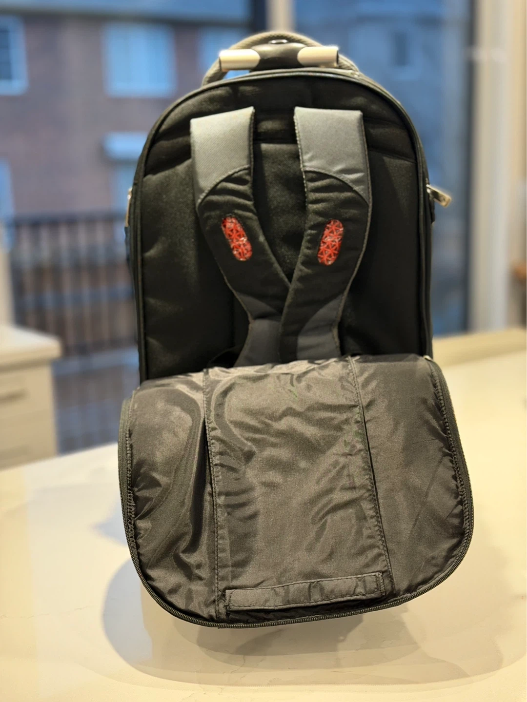 -Lots of pockets and storage for a few days of clothes plus a slot for laptop