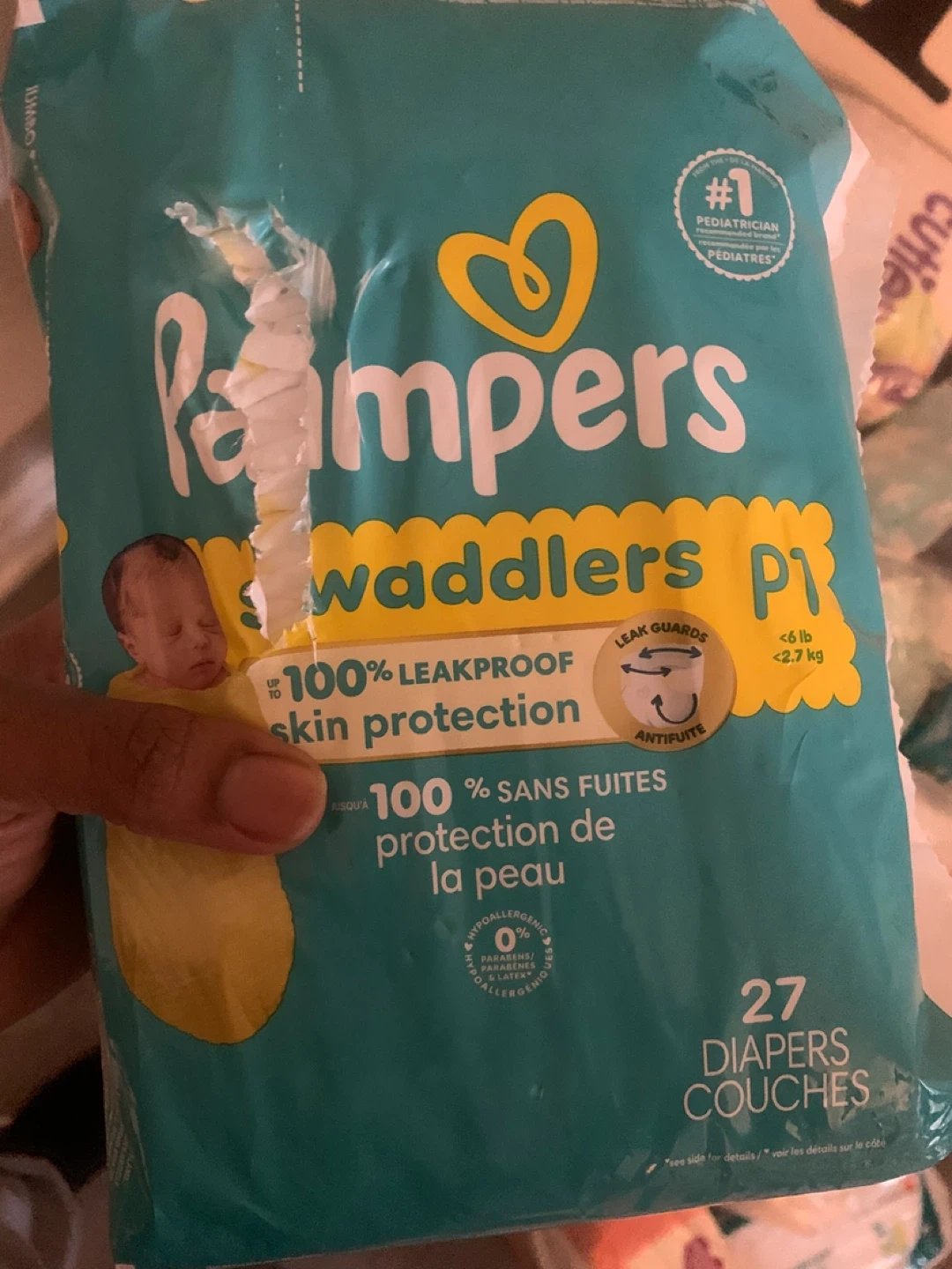 Pampers Swaddlers diapers offer up to 100% leakproof skin protection. They're hypoallergenic and free of parabens and latex. This package contains 27 diapers.