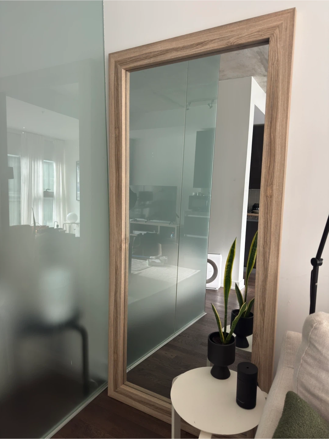 Priced for pick up this week. Last day for pick up 31st. Selling a large standing mirror with a light oak wood frame. It's in great condition.