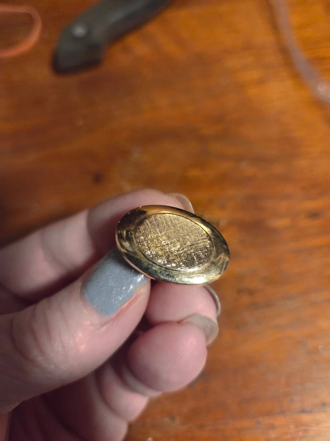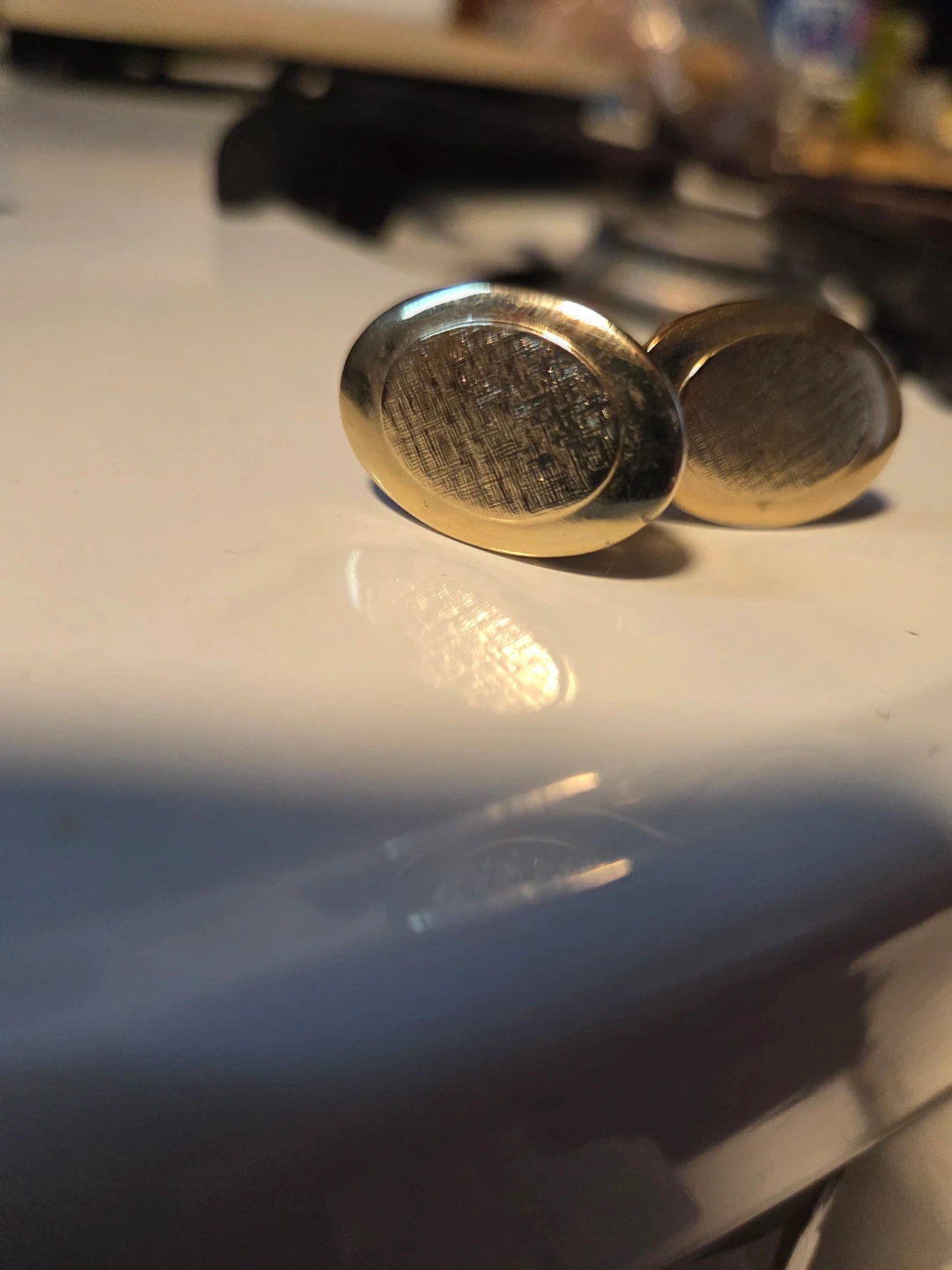 Buy & SellGold Oval Textured CufflinksGold Oval Textured Cufflinks$5A pair of oval cufflinks with a textured surface. Gold-toned metal.ConditionLike newWHERE TO MEETmy homeView MapSELLERTamaraFern Ridge100 reviews0 chats·0 favorites·21 viewsSEND CHAT TO SELLERHi Tamara! I’m interested in your listing.Hi Tamara! I’m interested in your listing.Get the Karrot app to chatSign In to chat