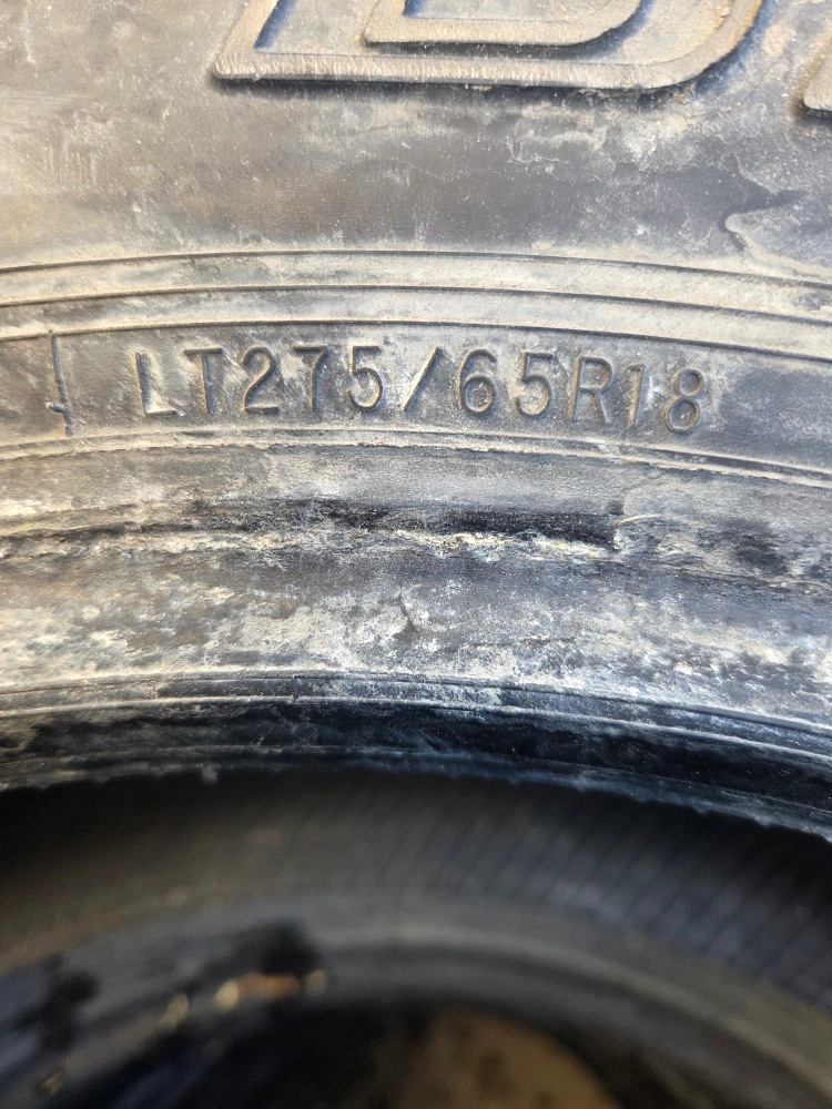 Selling a set of four tires, size LT275/65R18. They're used but still have some life left in them. Perfect for your truck or SUV. Please take a look at the photos for condition