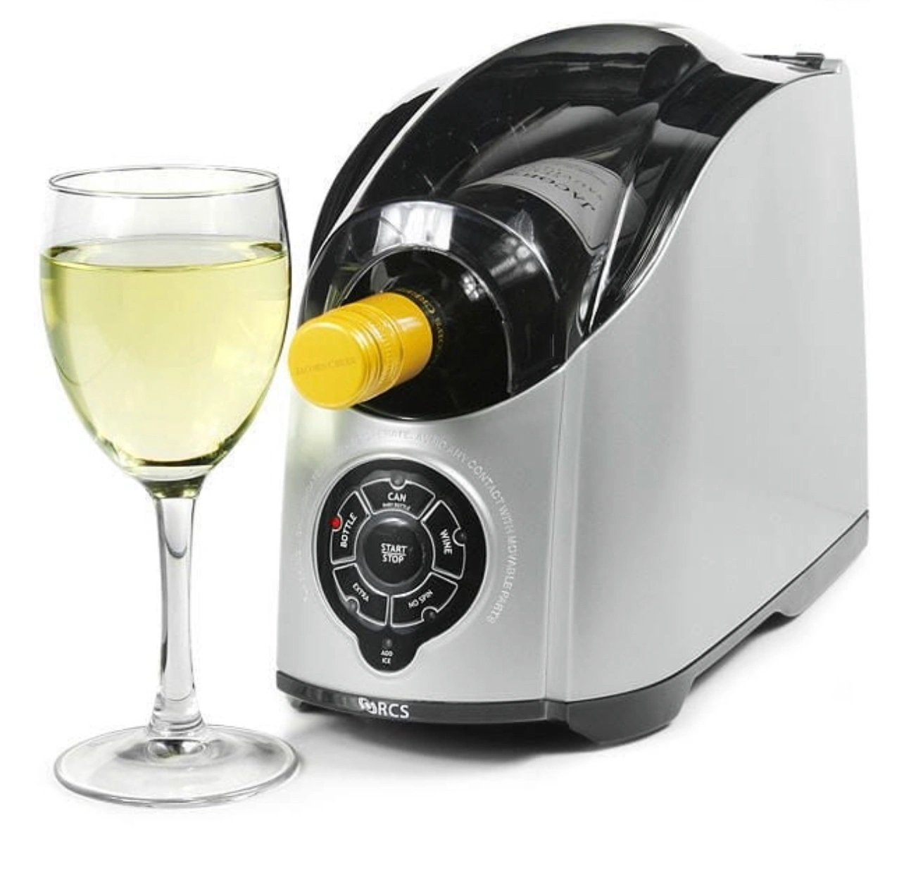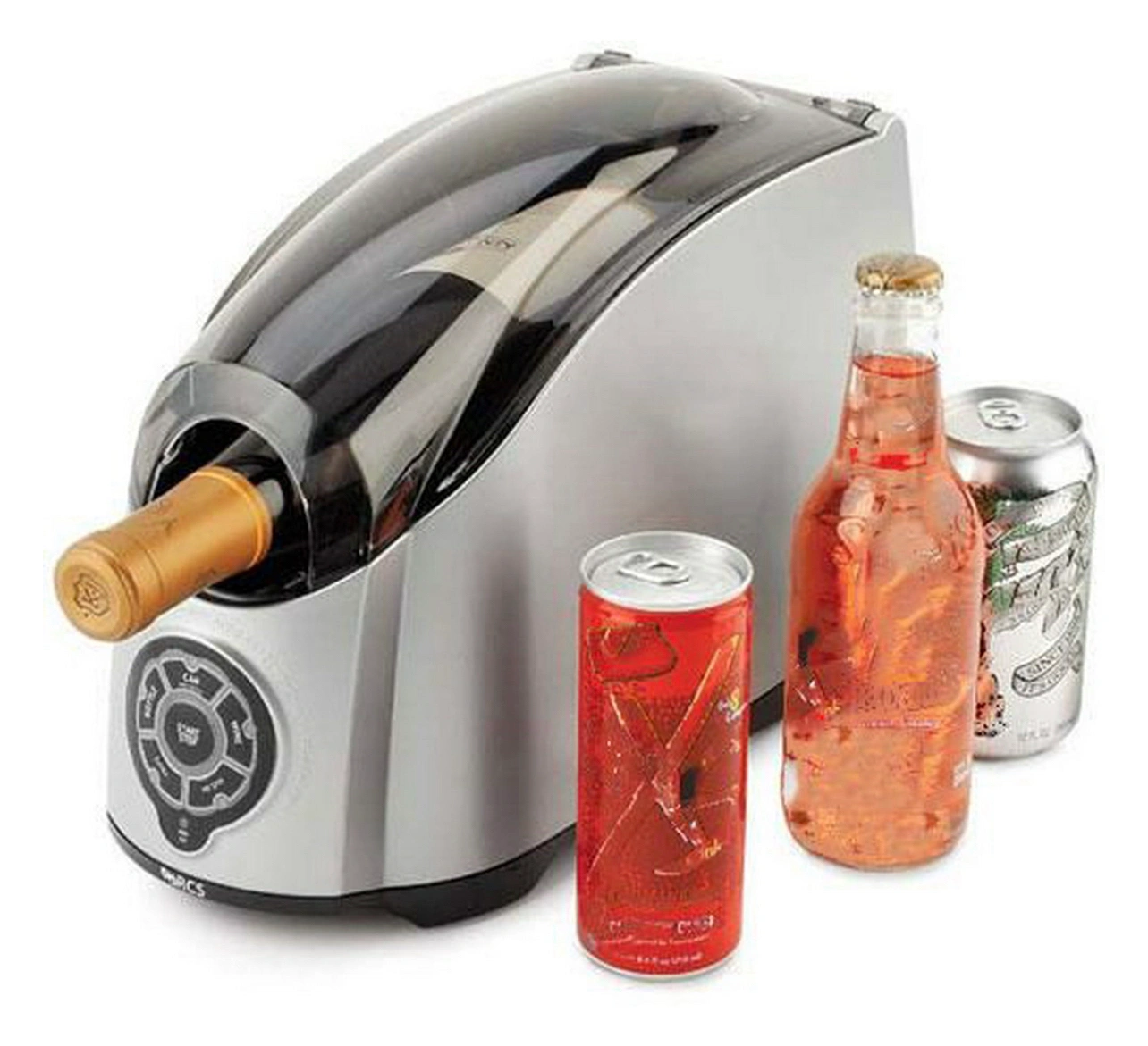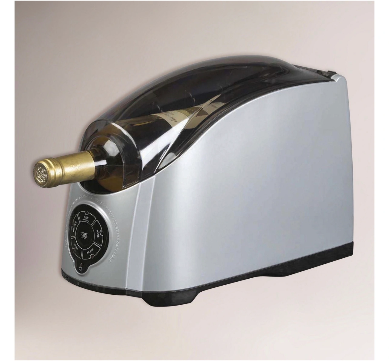 The Cooper Cooler rapidly Chills Beverages from Room Temperature (77°F/25°C) to Refrigerator Cold (43°FI6°C) or to "Ice Cold" (34°F/1°C) at the Touch of a Button. It chills Cans 90 Times Faster than a Refrigerator or 40 Times Faster than a Freezer. It is safe to chill carbonated beverages like beer or soda; no foaming over upon opening. WINE CHILLING: •Store your wine warm and Chill-On-Demand™ to your desired drinking temperature in minutes. •Chill wines to the high 60°F /20°C in 1 minute or to the low 50°F /11°C in 3.5 minutes. •NO SPIN button to chill delicate wines. GREAT FOR: •Parties or entertaining where there is a high demand for cold beverages. •Unexpected guests and spontaneous situations. •Chilling wine to your desired drinking temperature, not just refrigerator temperature which may be too cold. •Free up refrigerator space by storing your beverages warm.
