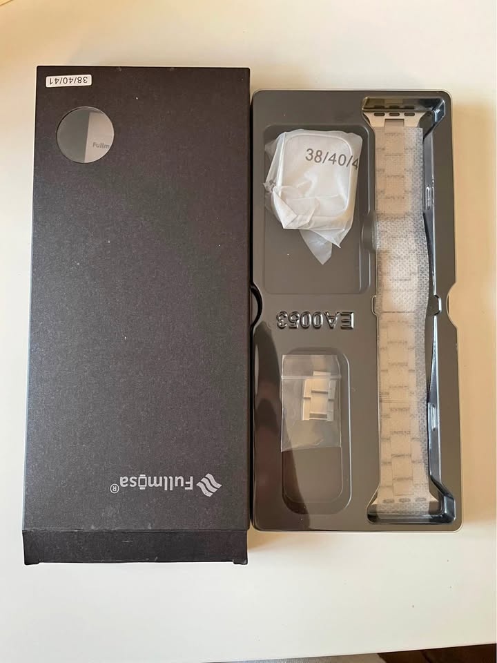New Fullmosa metal Apple Watch band. Fits 38/40/41mm watches. Silver color, includes extra links for size adjustment. Pick-up available in Streetsville or Downtown Toronto.