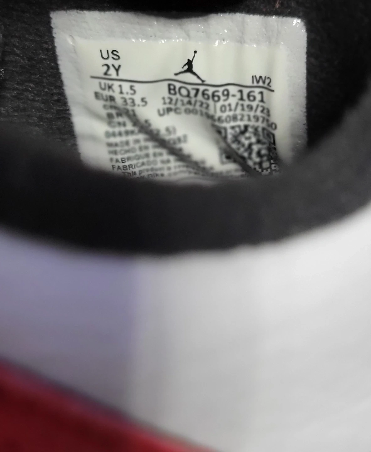Kids' Jordan 4 Retro sneakers in white with red accents. Features the iconic Jumpman logo. Style code BQ7669-161. Size US 2Y.