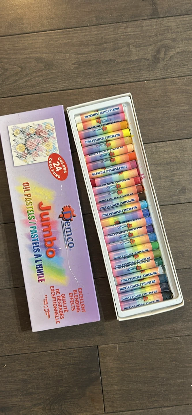This set includes 24 jumbo oil pastels in various colours. They're designed for excellent blending effects. Pastels are 10mm x 70mm.