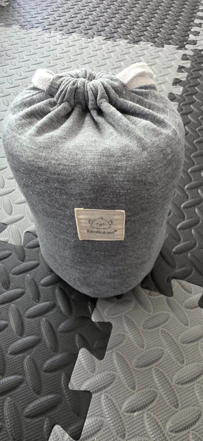 KeaBabies wrap carrier in grey. Made from a soft, stretchy cotton blend. This carrier is designed for newborns and infants up to 35 lbs. It's machine washable and easy to adjust.