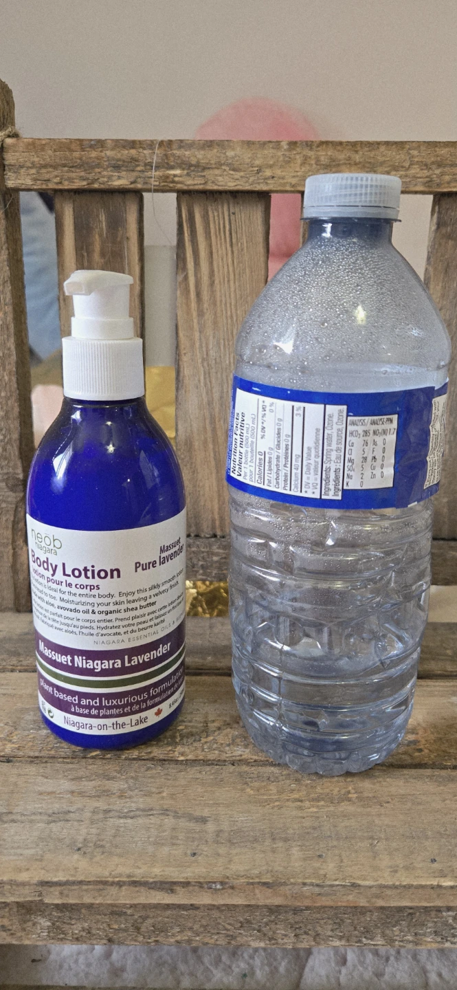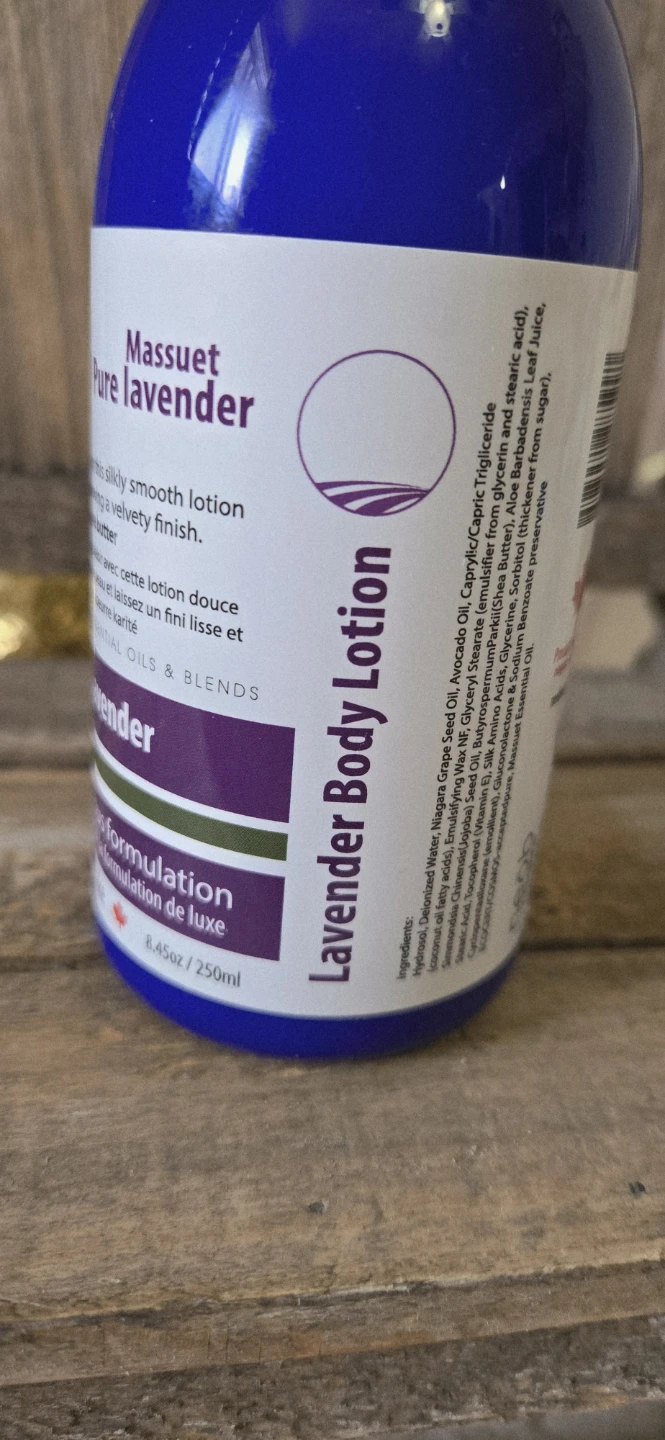 New!This is a plant-based body lotion with a pure lavender scent. It's made with aloe, avocado oil, and organic shea butter. The bottle contains 8.45oz or 250ml of lotion.