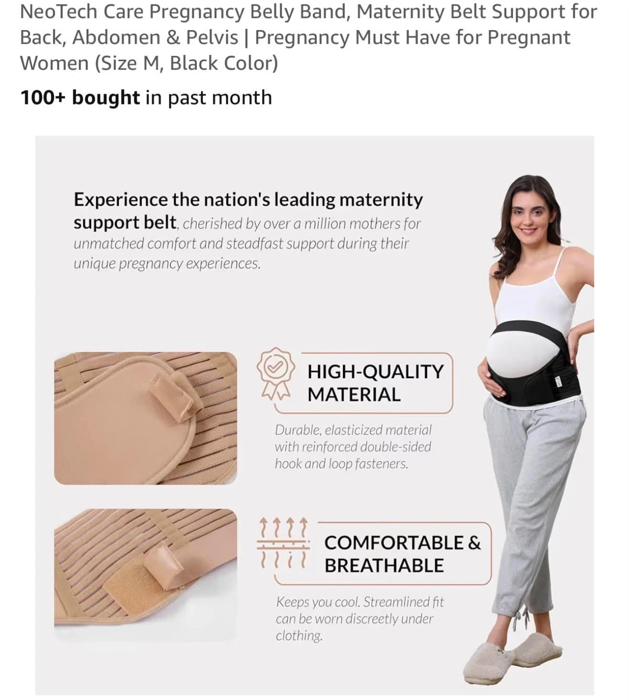 NeoTech Care pregnancy belly band offers support for your back, abdomen, and pelvis. It's made with durable, elasticized material and features hook and loop fasteners. The breathable design keeps you comfortable and can be worn discreetly under clothing.