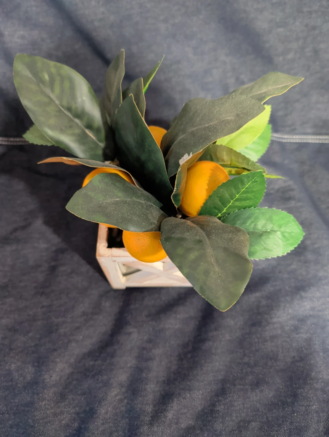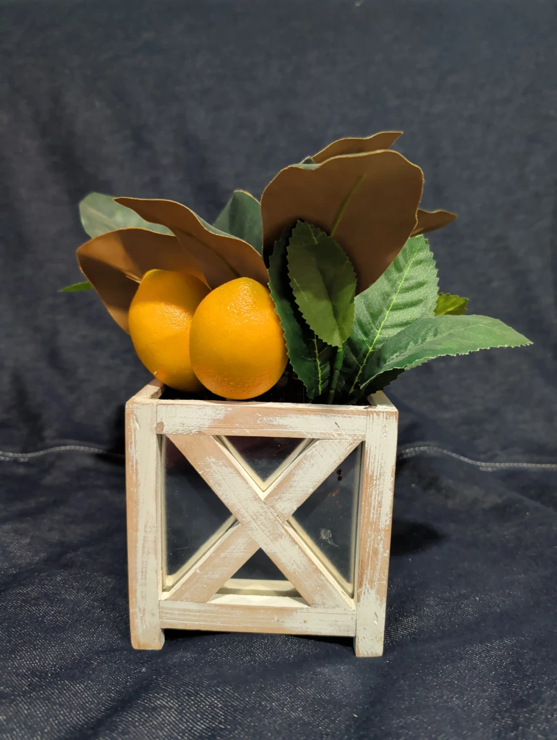 Faux Lemon Plant in Wood Box