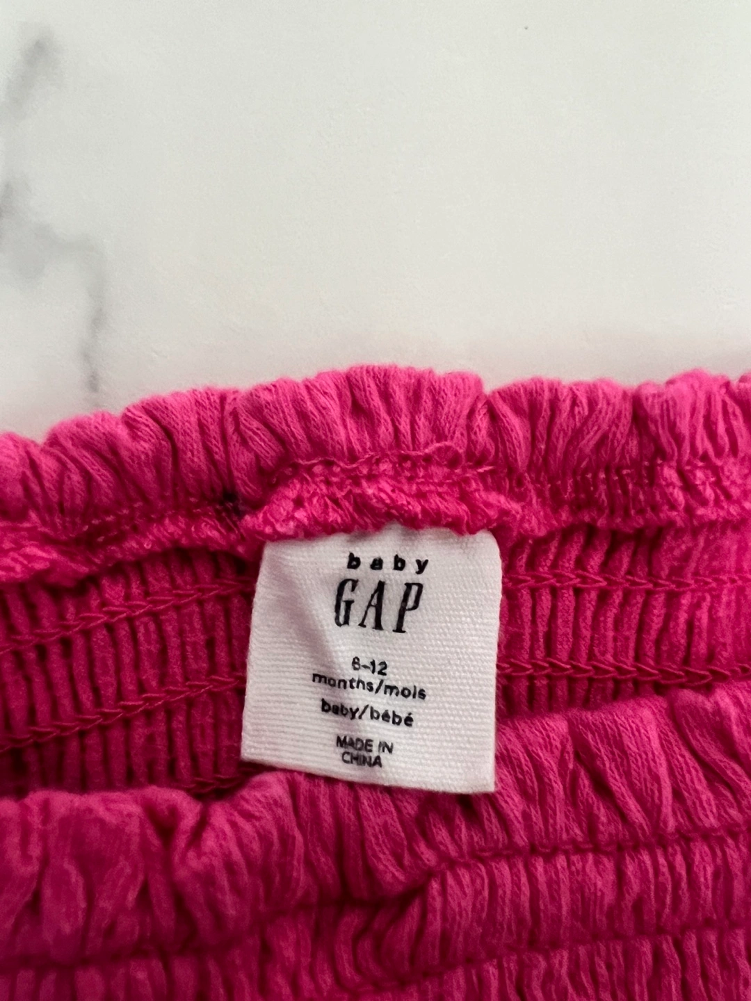 Bright pink dress with small straps. Elasticated bodice. Can be worn during a warm sunny day, bringing comfort and joy.