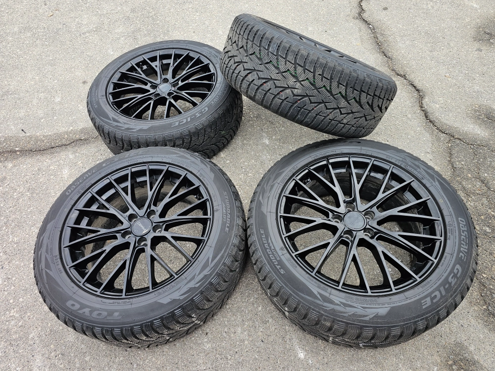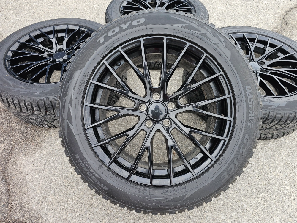 Set of 4 19" Replica rims with toyo observe winter tires on them used on Toyota highlander 245/55/R19. Rims and tires are in good shape, no bend, no cracks, no damage. Lots of thread left, tpms installed