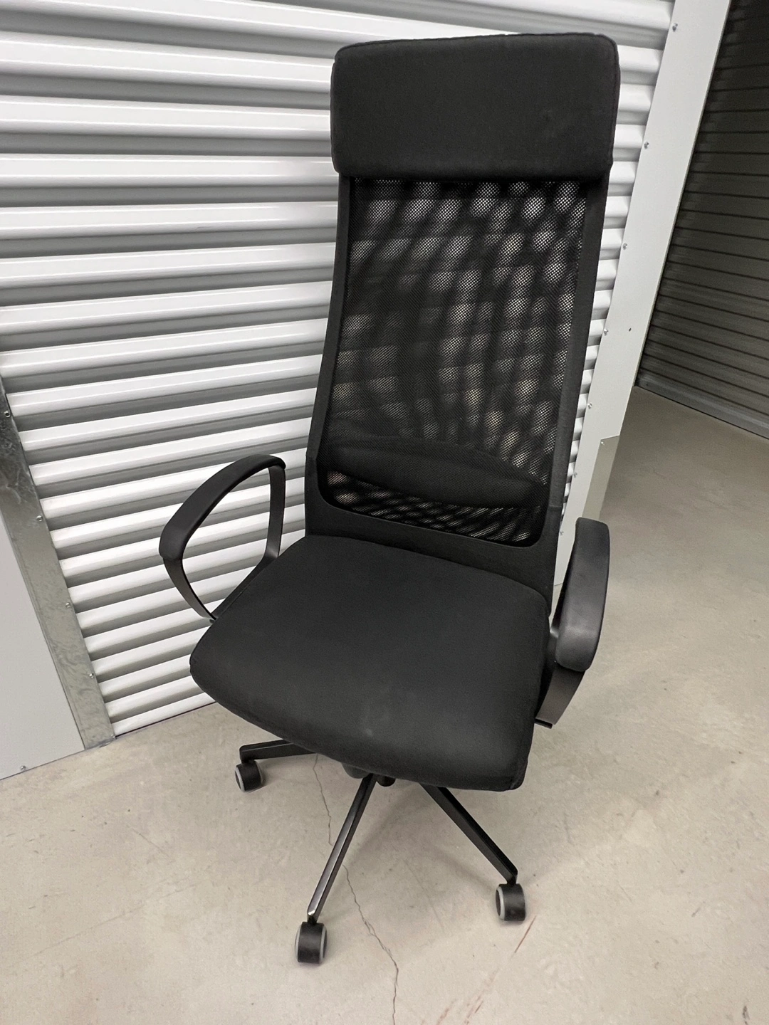 Comfortable black office chair from Ikea. Very clean, in great condition. Adjustable height. Good lumbar and head support.
