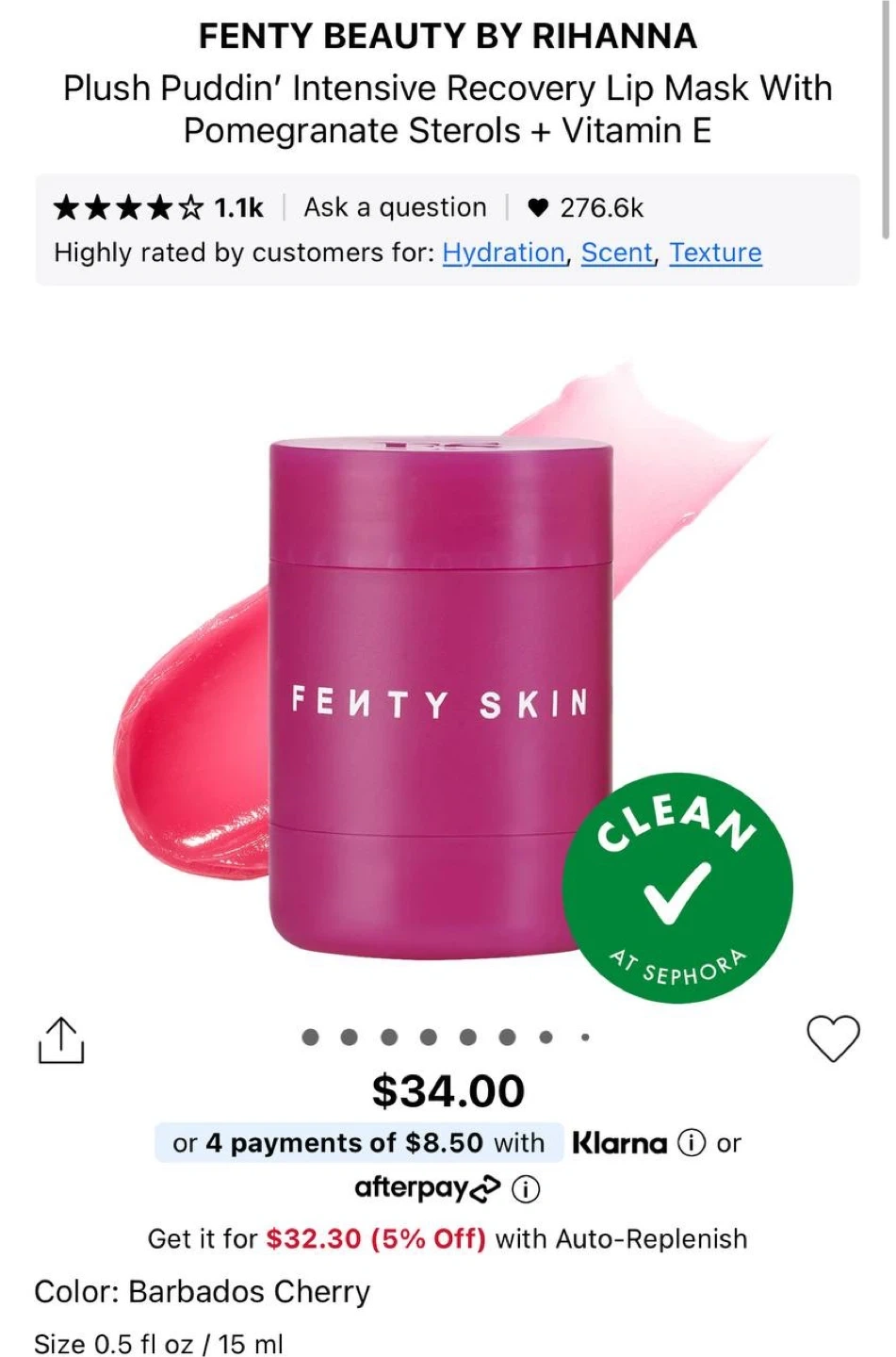Selling a brand new, never used Fenty Skin Plush Puddin’ Intensive Recovery Lip Mask.