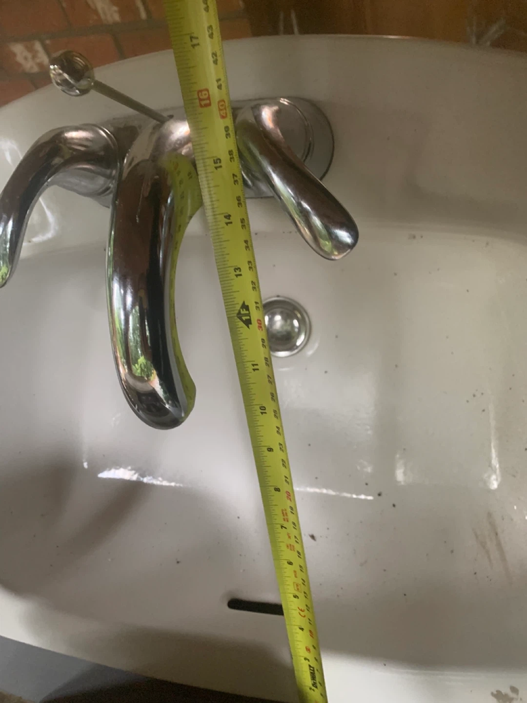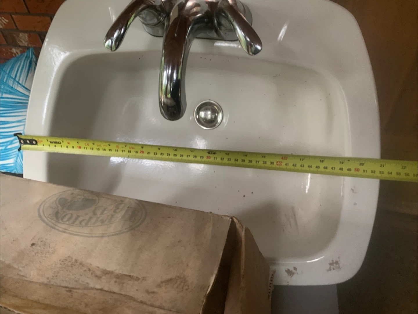 Selling a Hampton Bay white sink. It's in good condition and ready for your bathroom or utility room! It measures approximately 17 inches in width and 22 inches in length.