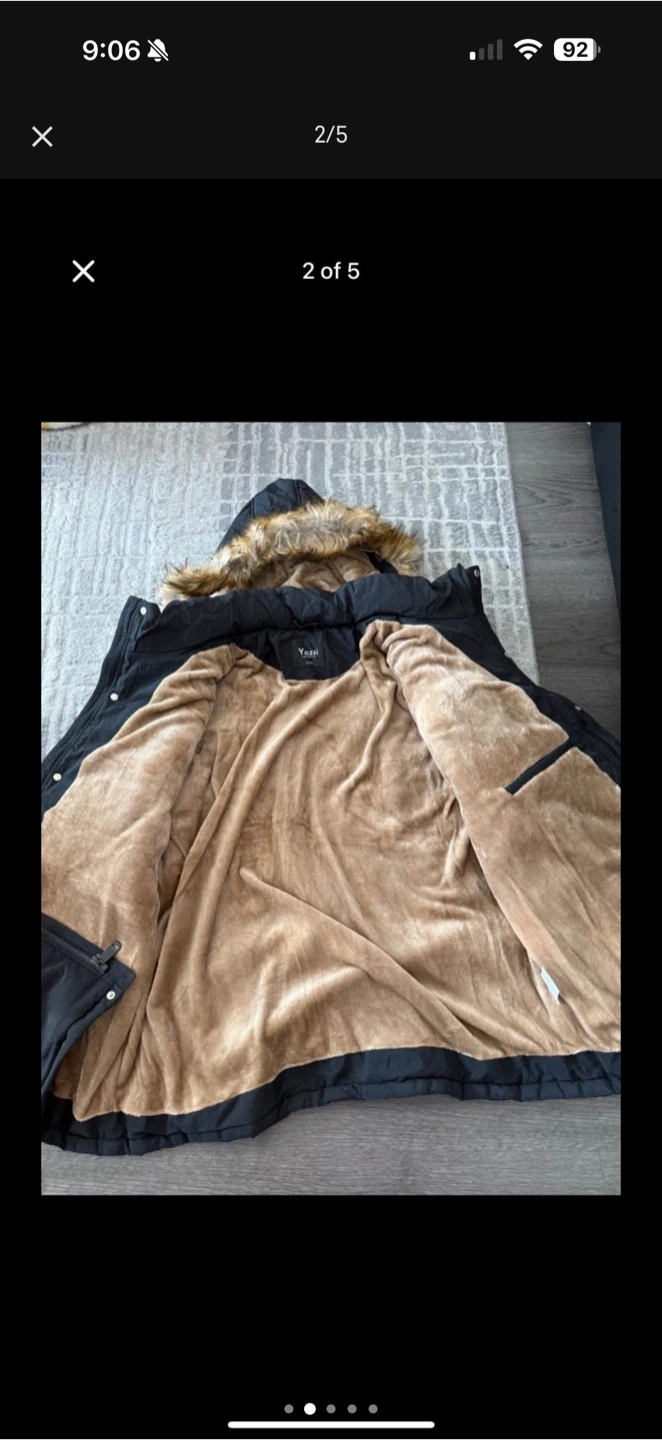 Cozy YOZAI jacket in black, perfect for staying warm! It's a size 2XL and features a soft, plush lining.