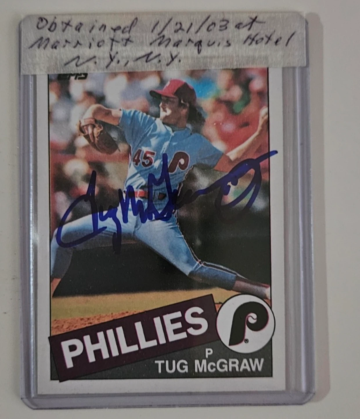 1985 Topps TUG MCGRAW, PHILLIES, Autographed Card