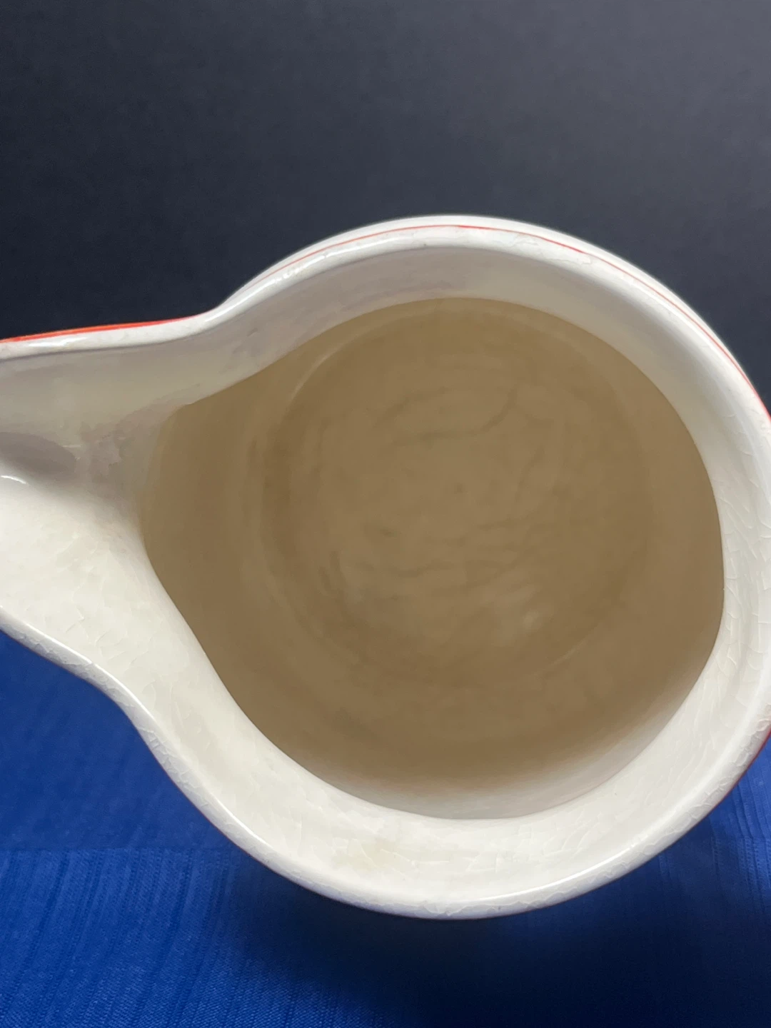 This vintage pitcher features the Cattail (also known as Camwood) pattern, a popular mid-century design. It was produced by Universal Potteries of Cambridge, Ohio, and sold widely through Sears, Roebuck and Co. during the 1940s and 1950s.