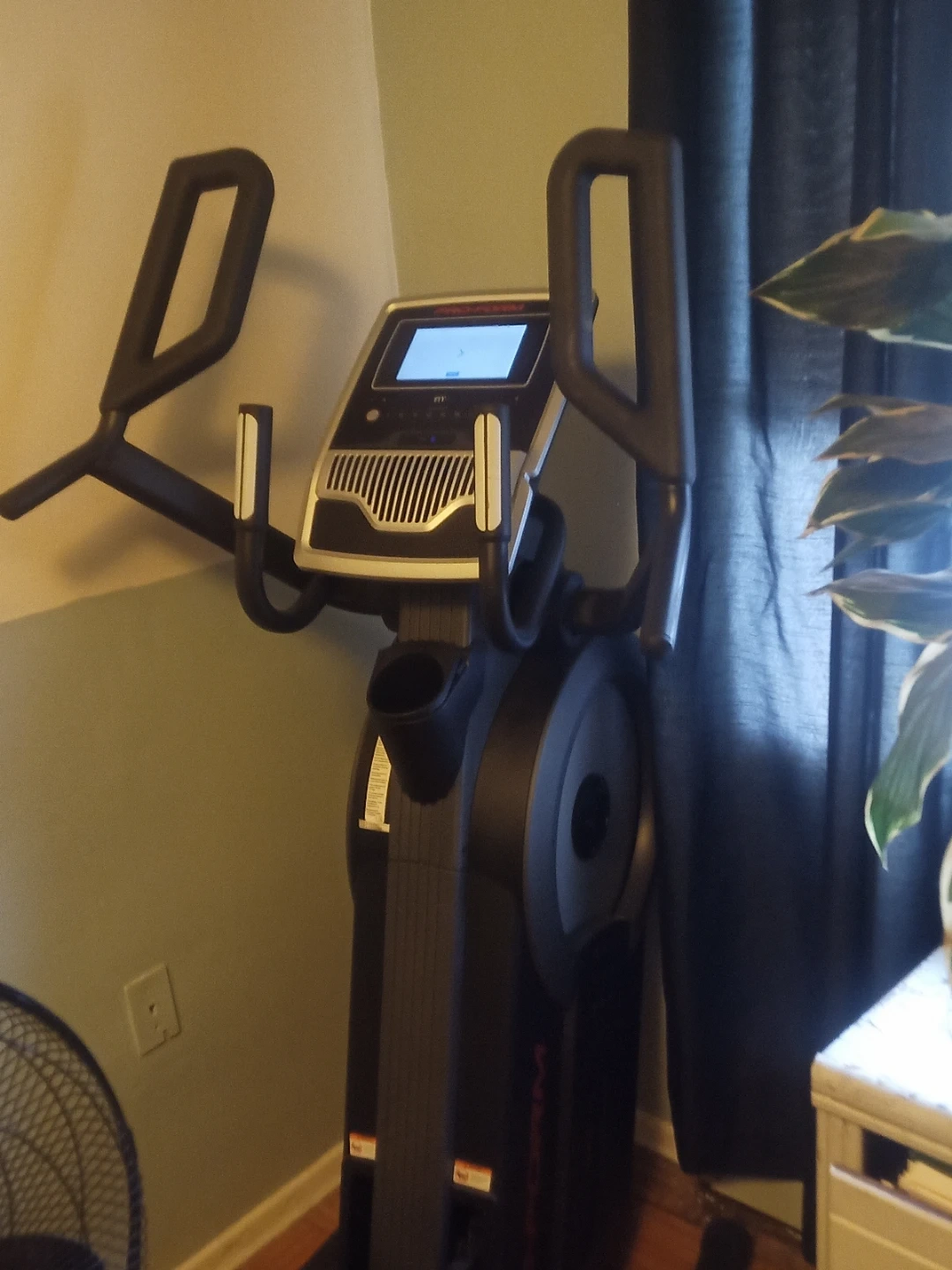 This ProForm elliptical trainer offers multiple resistance levels for a great workout. It has a digital display for tracking progress. Suitable for home gym use. In perfect shape !