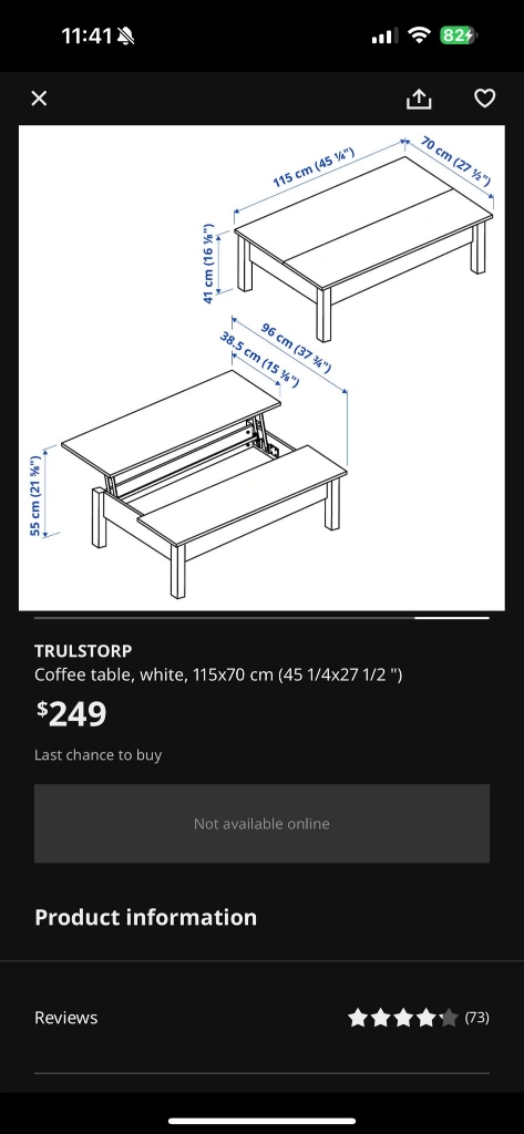 Buy & SellWhite Lift Top Coffee TableWhite Lift Top Coffee Table$102White coffee table with lift top. The table has storage space inside. (pickup from the door)ConditionLike newWHERE TO MEETCheck LocationView MapSELLERverifiedOmid zabetSunset620 reviews1 chats·0 favorites·73 viewsSEND CHAT TO SELLERHi Omid zabet! I’m interested in your listing.Hi Omid zabet! I’m interested in your listing.Get the Karrot app to chatSign In to chat
