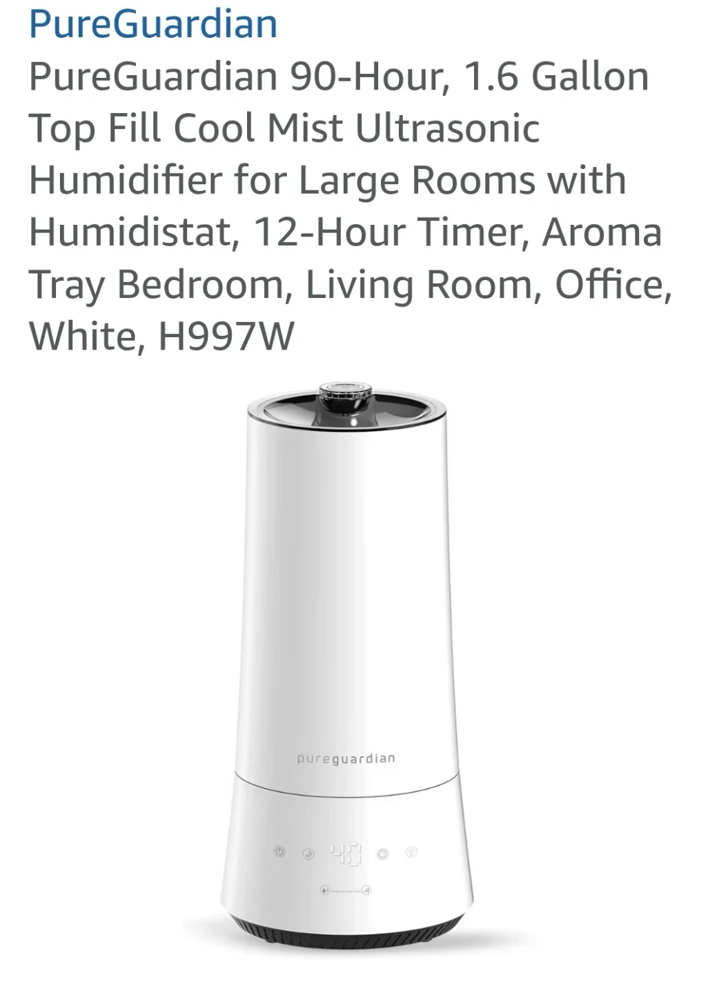 PureGuardian Ultrasonic Humidifier 90-Hour