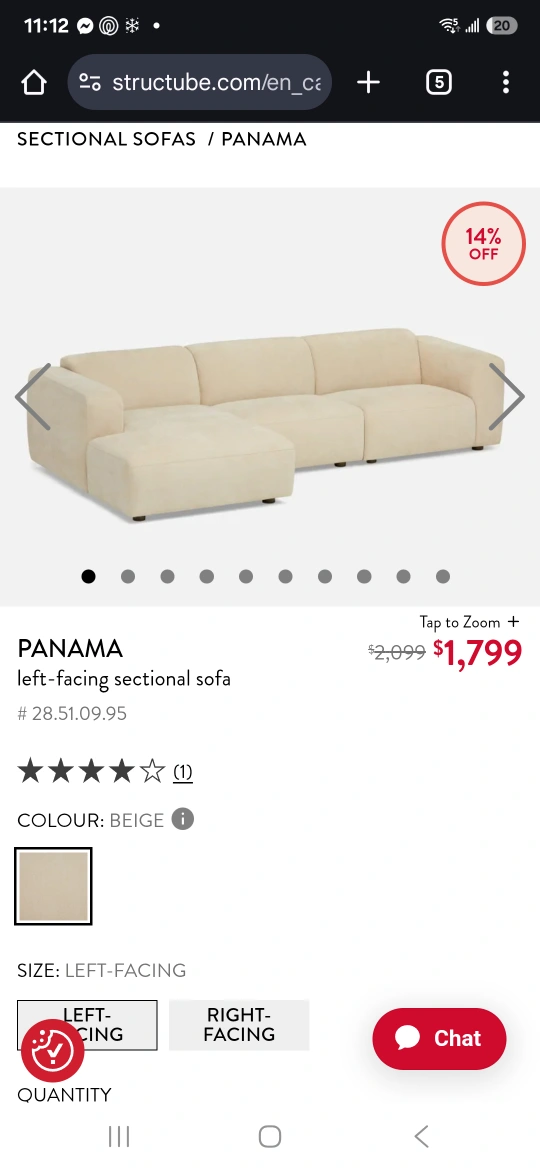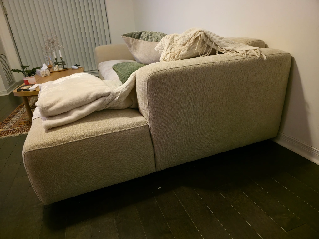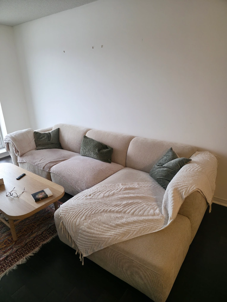 "This L-shaped sectional sofa was purchased 7 months ago from Structube and is being sold due to relocation abroad. The sofa is in like-new condition, with no wear or noise at all. You can see a similar model in the mentioned store to check it out in person and read reviews. Please, only serious buyers contact. The price is firm."