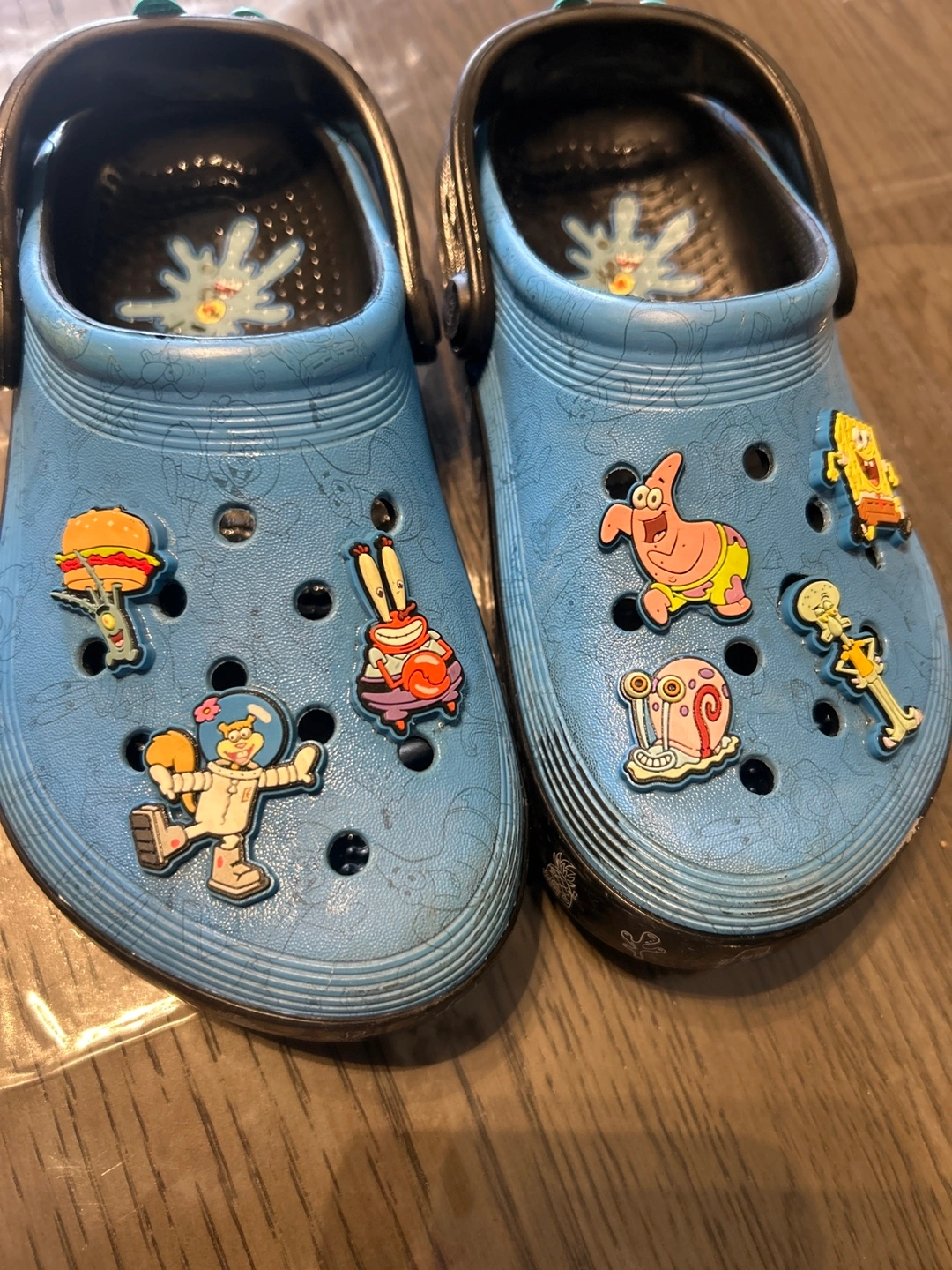 Size 13 -These are a pair of Crocs clogs featuring Spongebob Squarepants characters and designs. They're in good condition and ready for a new home! Perfect for any Spongebob fan