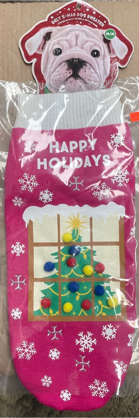 dog Christmas sweater for sale! Size S, M ,L and has a cute design. Perfect for the holidays!