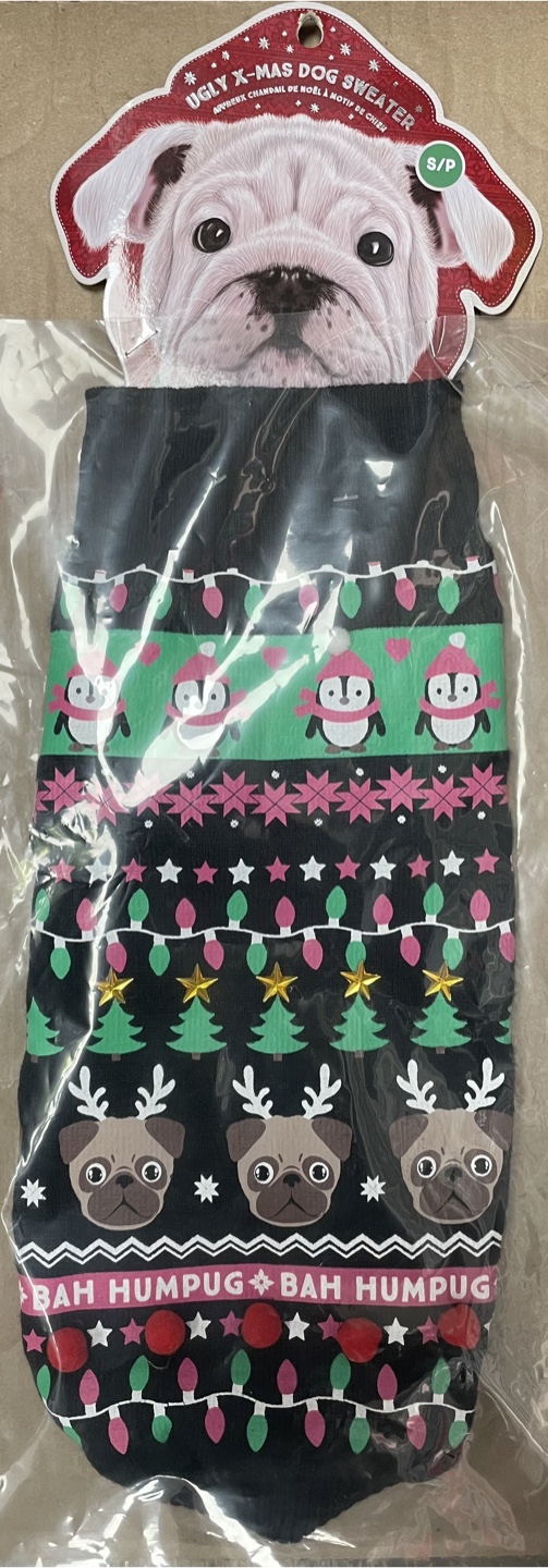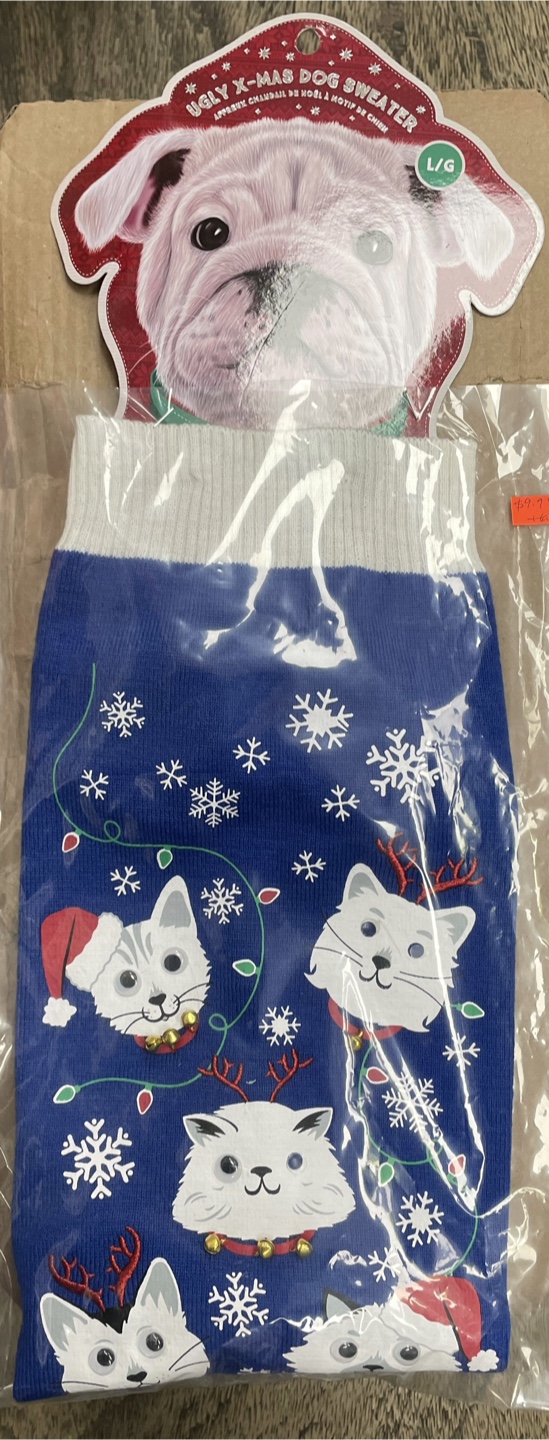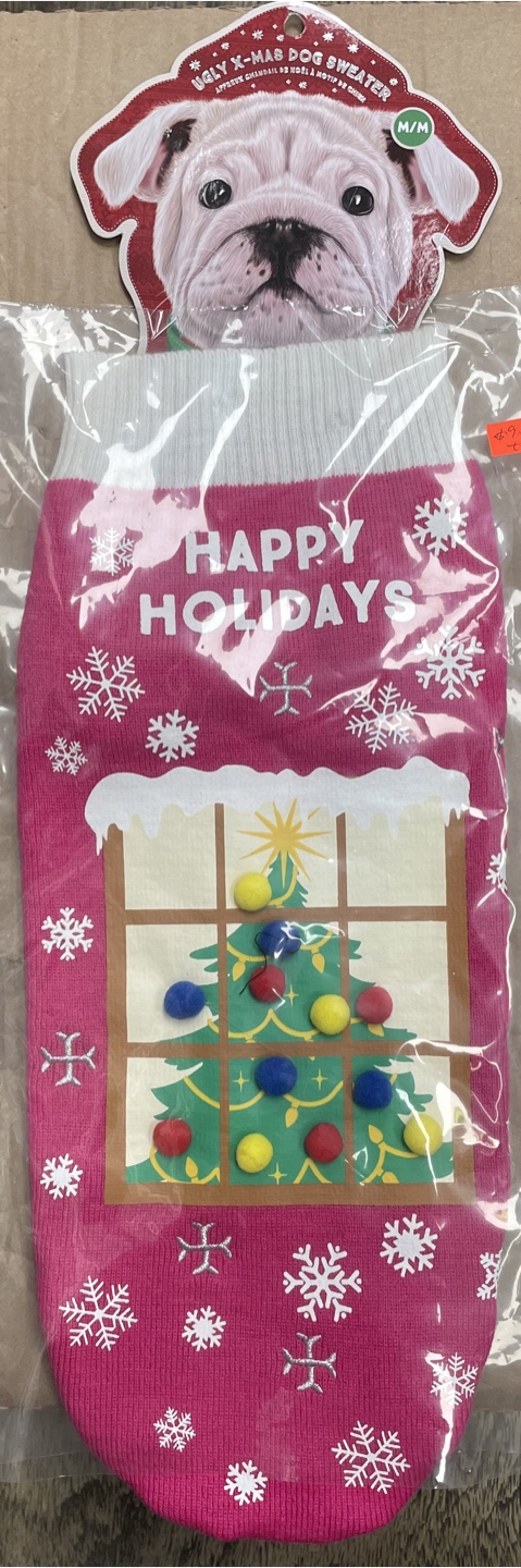 dog Christmas sweater for sale! Size S, M ,L and has a cute design. Perfect for the holidays!