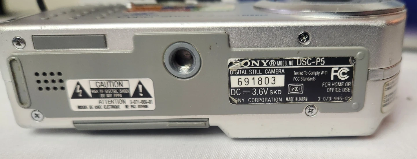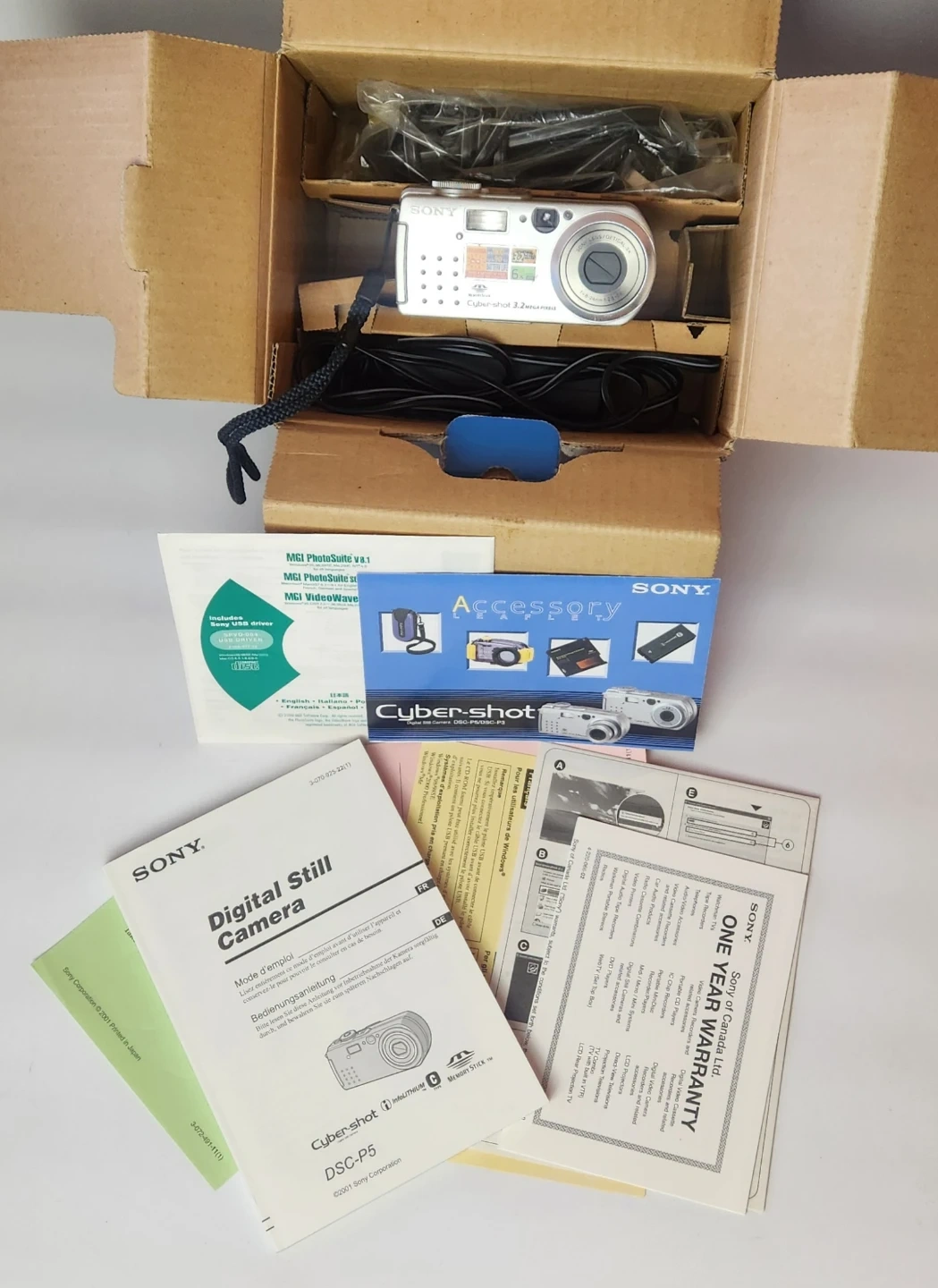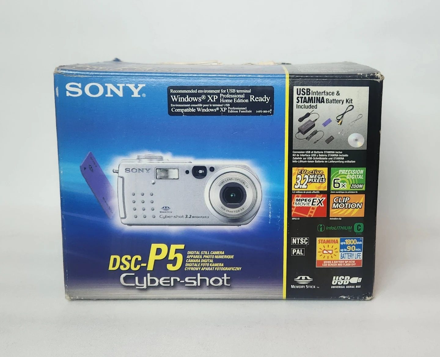 The Sony Cyber-shot DSC-P5 is a compact 3.2-megapixel digital camera released in 2001, featuring a 3x optical zoom, a 1.5-inch LCD screen, and a stylish, lightweight, long-bodied design. It uses the NP-FC10 InfoLithium battery and Memory Stick media. Known for its portability and decent photo quality, it was a successor to the DSC-P1.