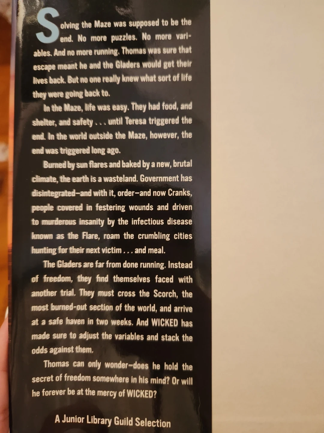 This is 'The Scorch Trials', a paperback book by James Dashner. It's the sequel to 'The Maze Runner'. The story follows Thomas and the Gladers as they face a new brutal climate and deadly infectious disease known as the Flare. If you interested chat with me and I'll give you the meeting spot/my address.