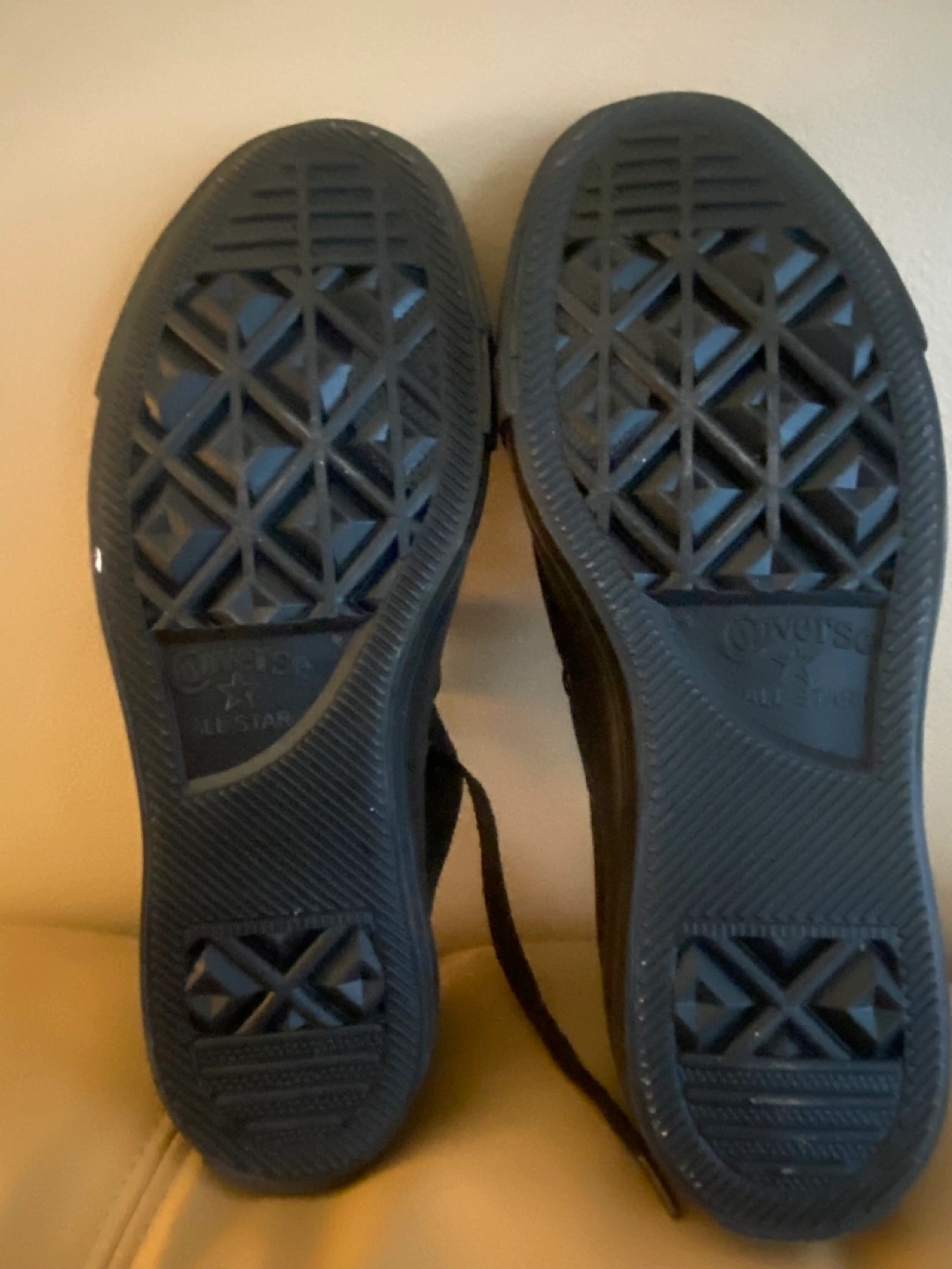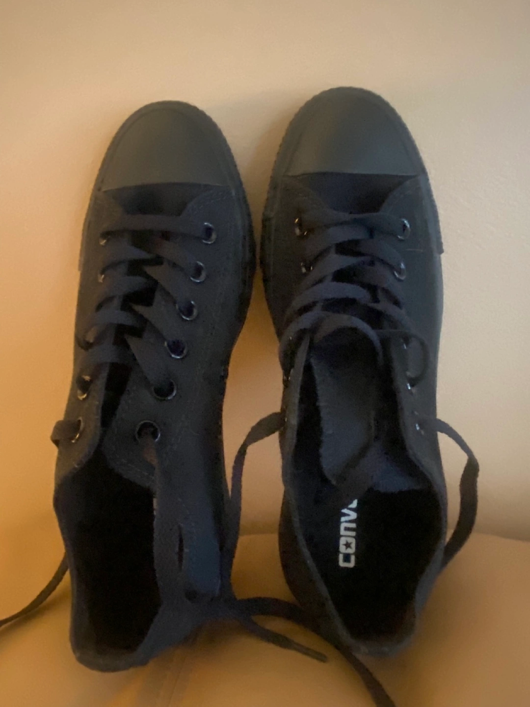 I'm selling a pair of classic black Converse All Star low-top unisex sneakers. They're in great shape and ready for a new home! The size is a men's 6 and a women's 8. They're made with a textile upper and a rubber sole