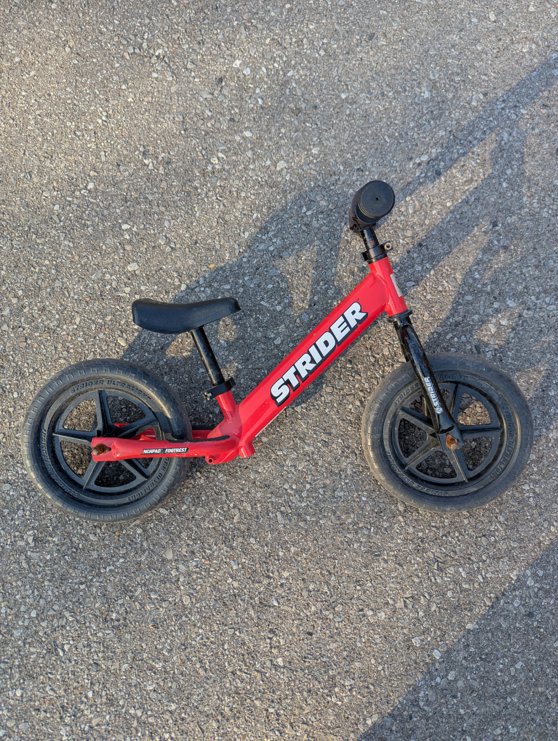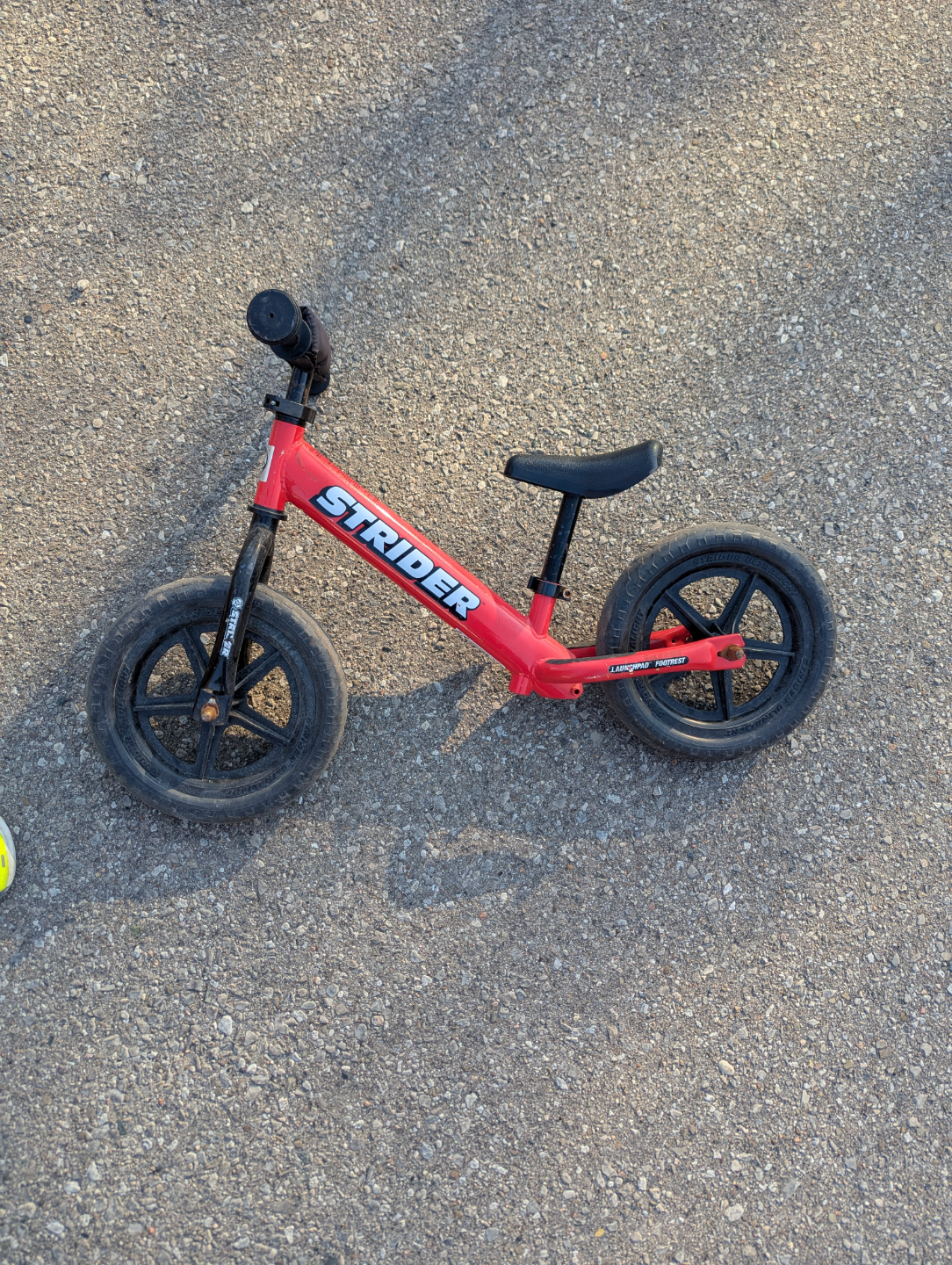 Strider balance bike. unisex. a little wear and tear, road ready. 25 obo