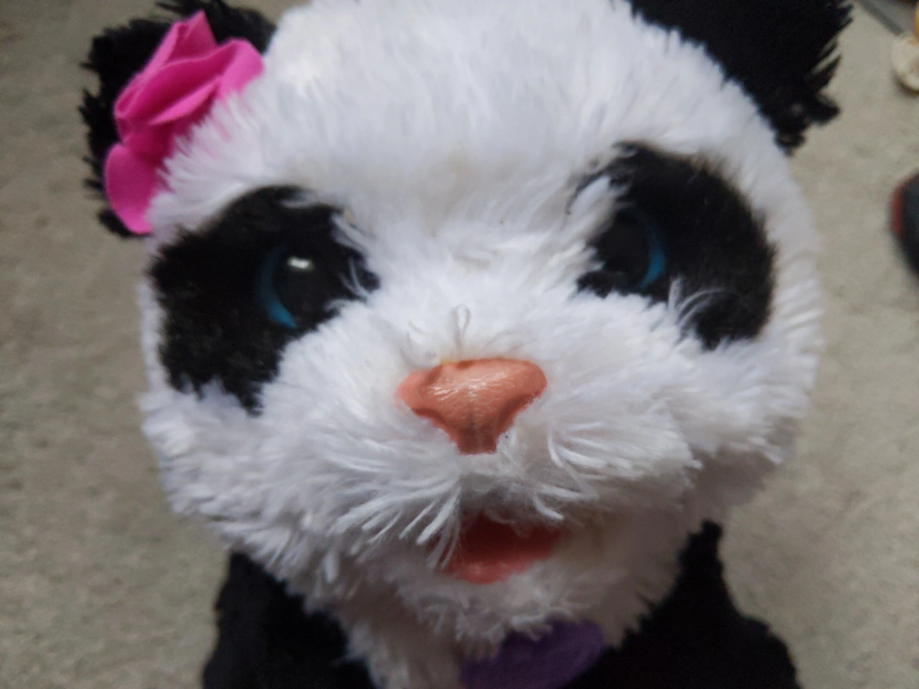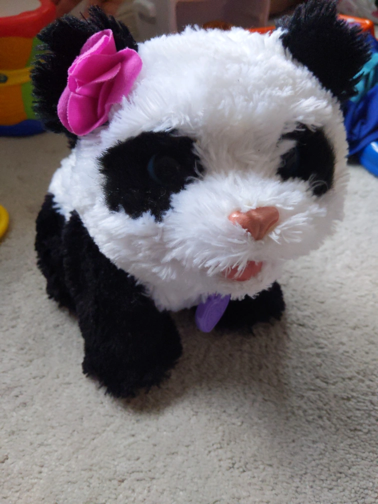 Interactive plush toy with sounds and movement. Brand is FurReal Friends. It has moving arms and legs. It has a pink flower on its ear for decor. Payment is cash only and pickup only please buy!