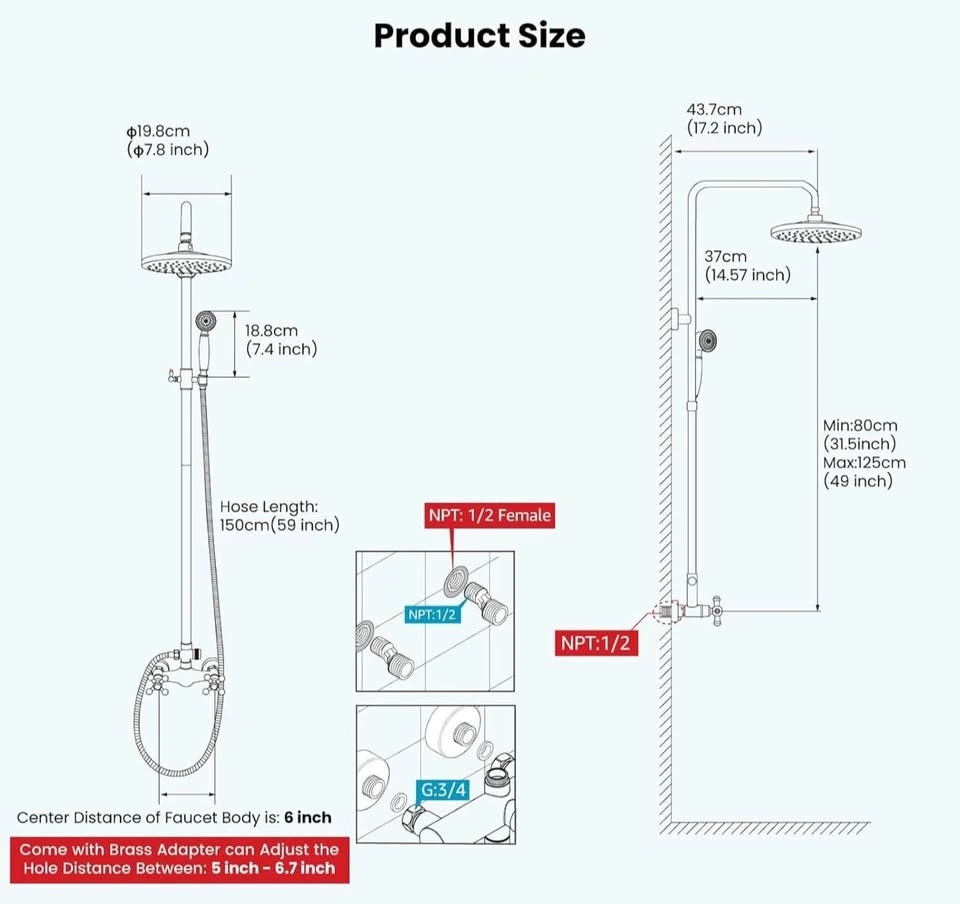 Gotonovo Exposed Shower Faucet Set - 8" Rainfall Head + Handheld