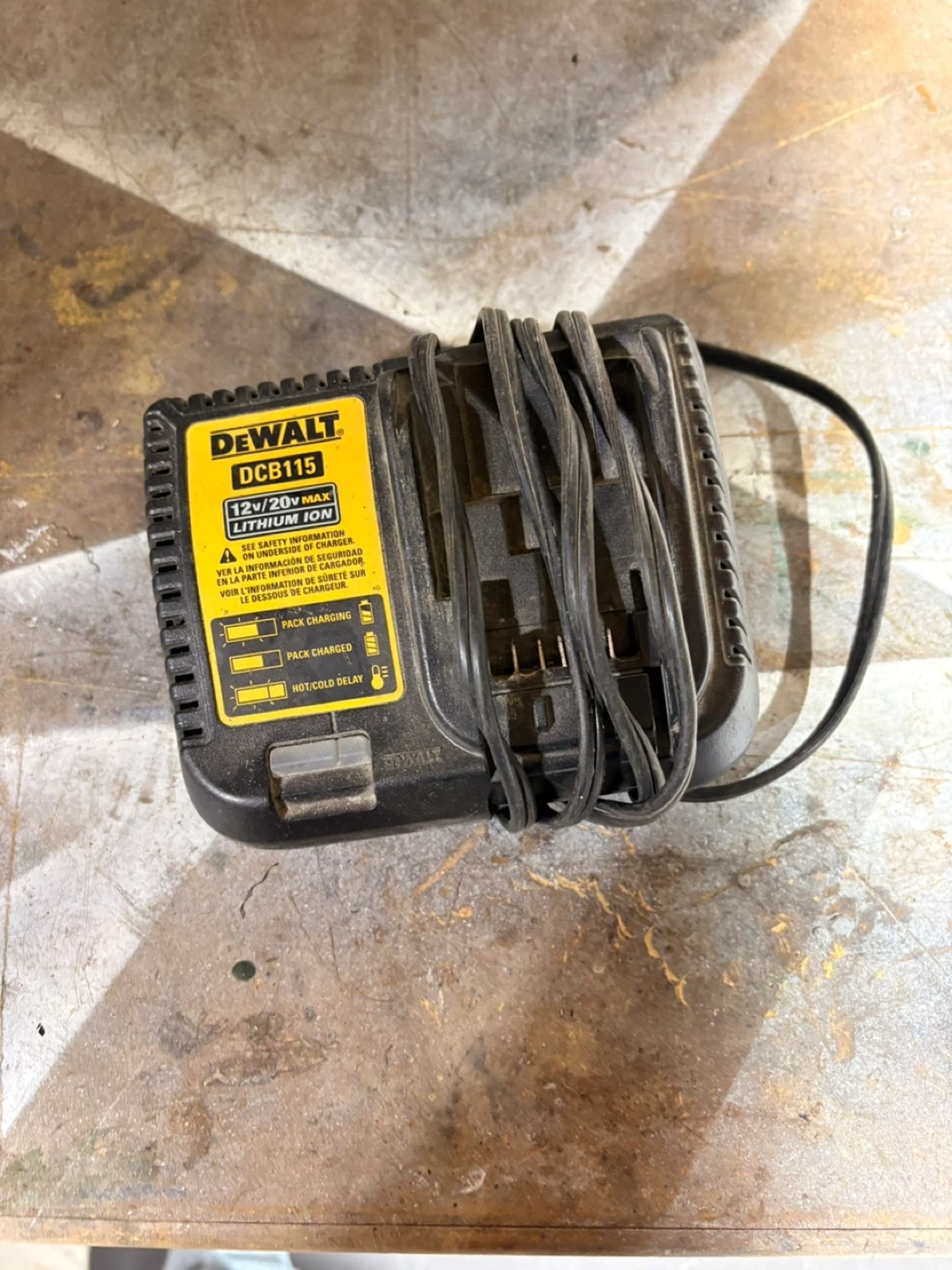 This is a DEWALT DCB115 battery charger. It's designed for 12V and 20V MAX Lithium Ion batteries. Pack charging indicator is included.
