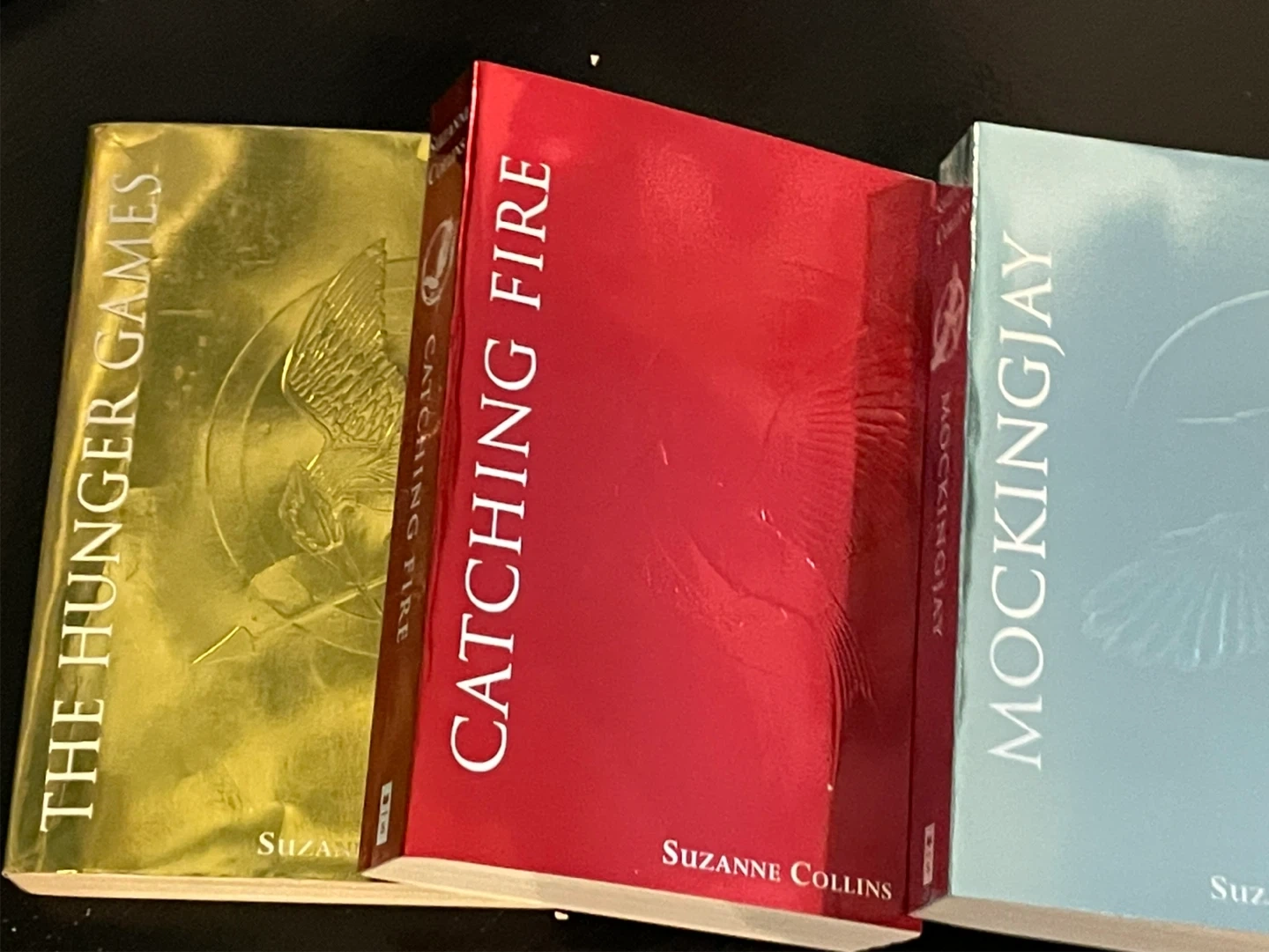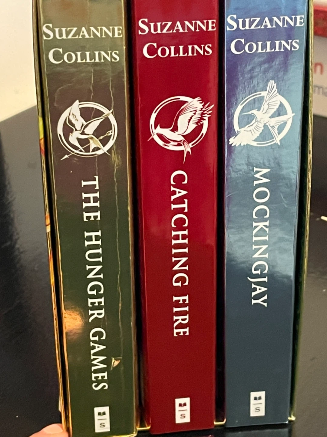 This is the complete Hunger Games trilogy by Suzanne Collins. It includes The Hunger Games, Catching Fire, and Mockingjay. These are paperback books.