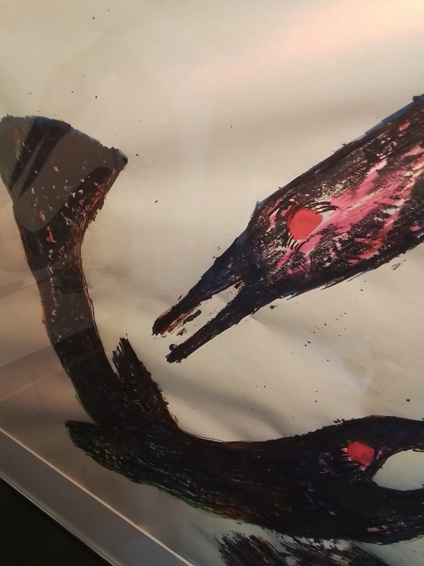 Framed Original Mix Media Painting: Kananginak "Loon and Fish"
