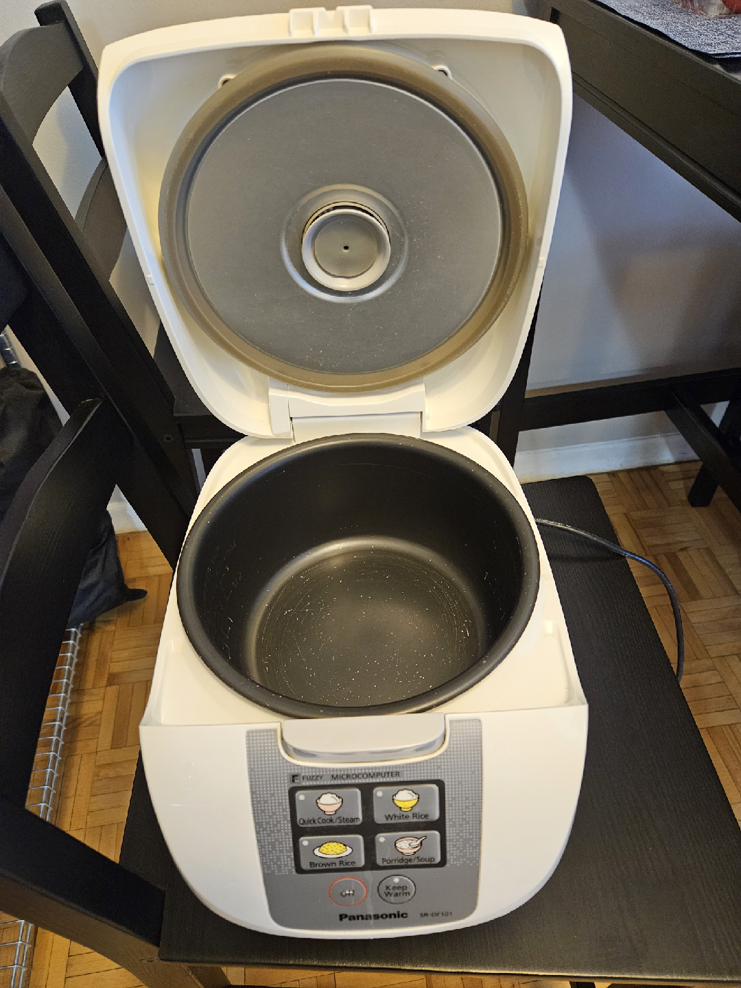 Pick up only. Selling a Panasonic SR-DF101 Fuzzy Microcomputer rice cooker. It's in good condition with a some markings in the bowl but still works great for cooking rice. It has settings for quick cook/steam, white rice, brown rice, and porridge/soup. Plus, it has a keep warm function.
