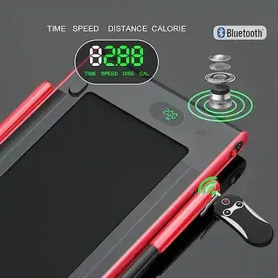 This SuperFit treadmill offers both running and walking modes, with speeds ranging from 1km/h to 12km/h. It features a high-tech, high-density running belt designed for shock absorption and comfort. A built-in Bluetooth speaker allows you to play music while you exercise.