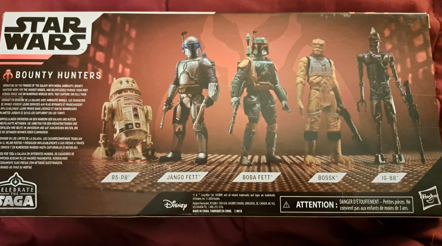 Selling a Star Wars Celebrate the Saga Bounty Hunters action figure set! This set includes R5-P8, Jango Fett, Boba Fett, Bossk, and IG-88 figures. Perfect for any Star Wars fan or collector!