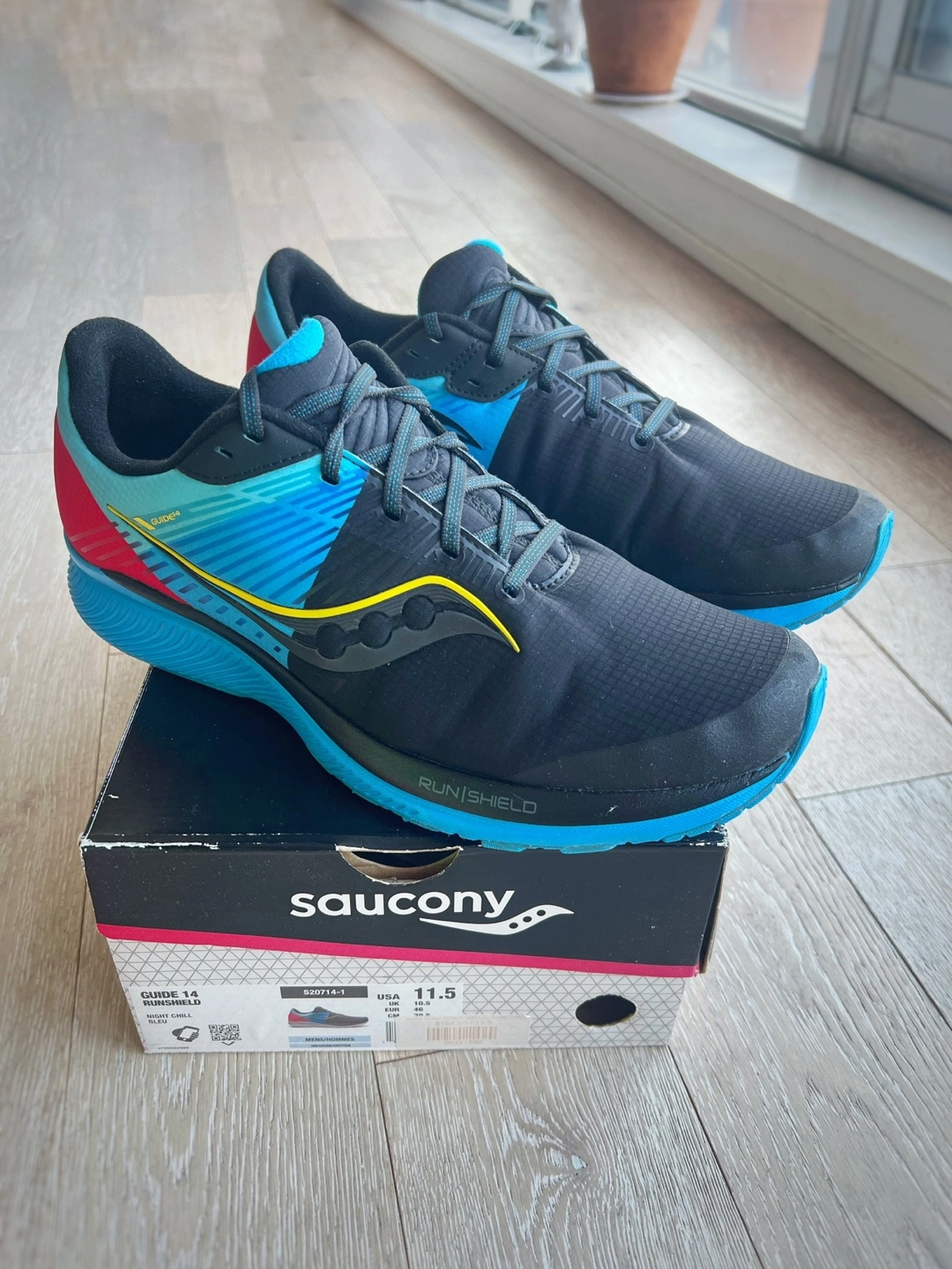 Men's Saucony Guide 14 running shoes. Size 11.5. Night Chill Bleu. Excellent condition. RunShield technology. I ran in them a few time and never used them again!