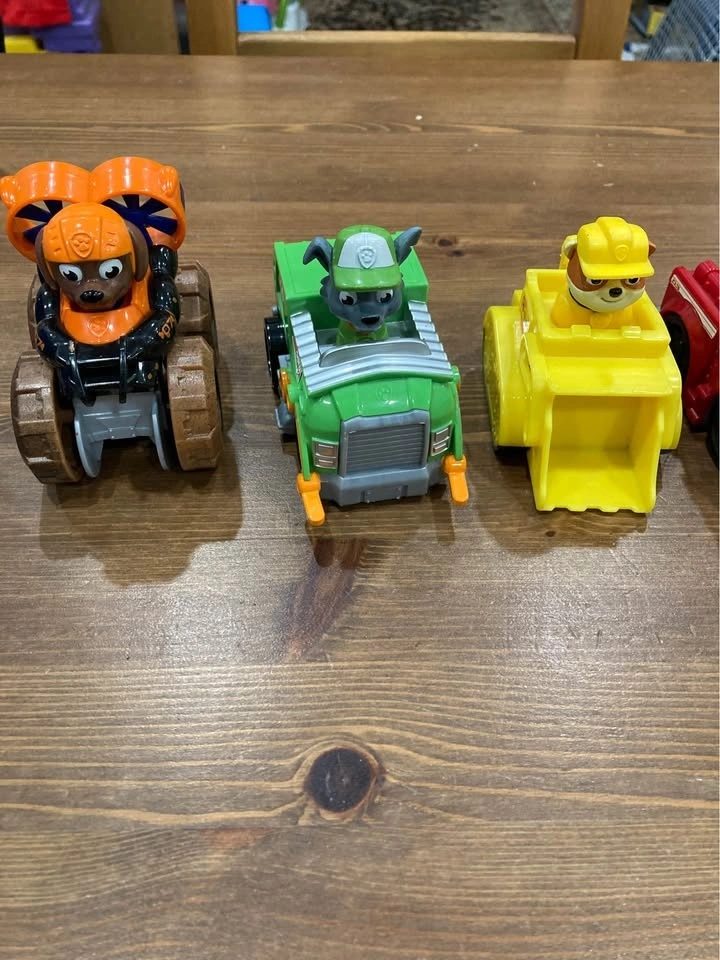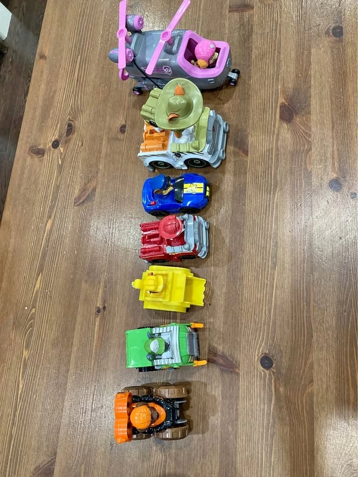 PAW Patrol toy lot in good used condition featuring multiple vehicles and characters. Great for imaginative play or adding to a PAW Patrol collection.