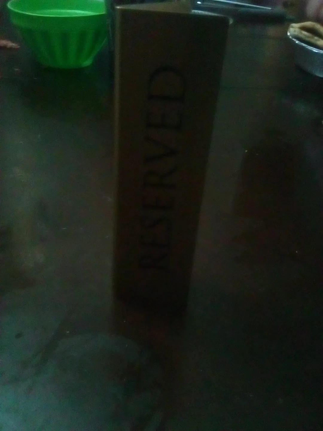 This is a metal table tent sign that says "RESERVED" on both sides. It's a classic design for restaurants or events. Gold-tone metal construction.