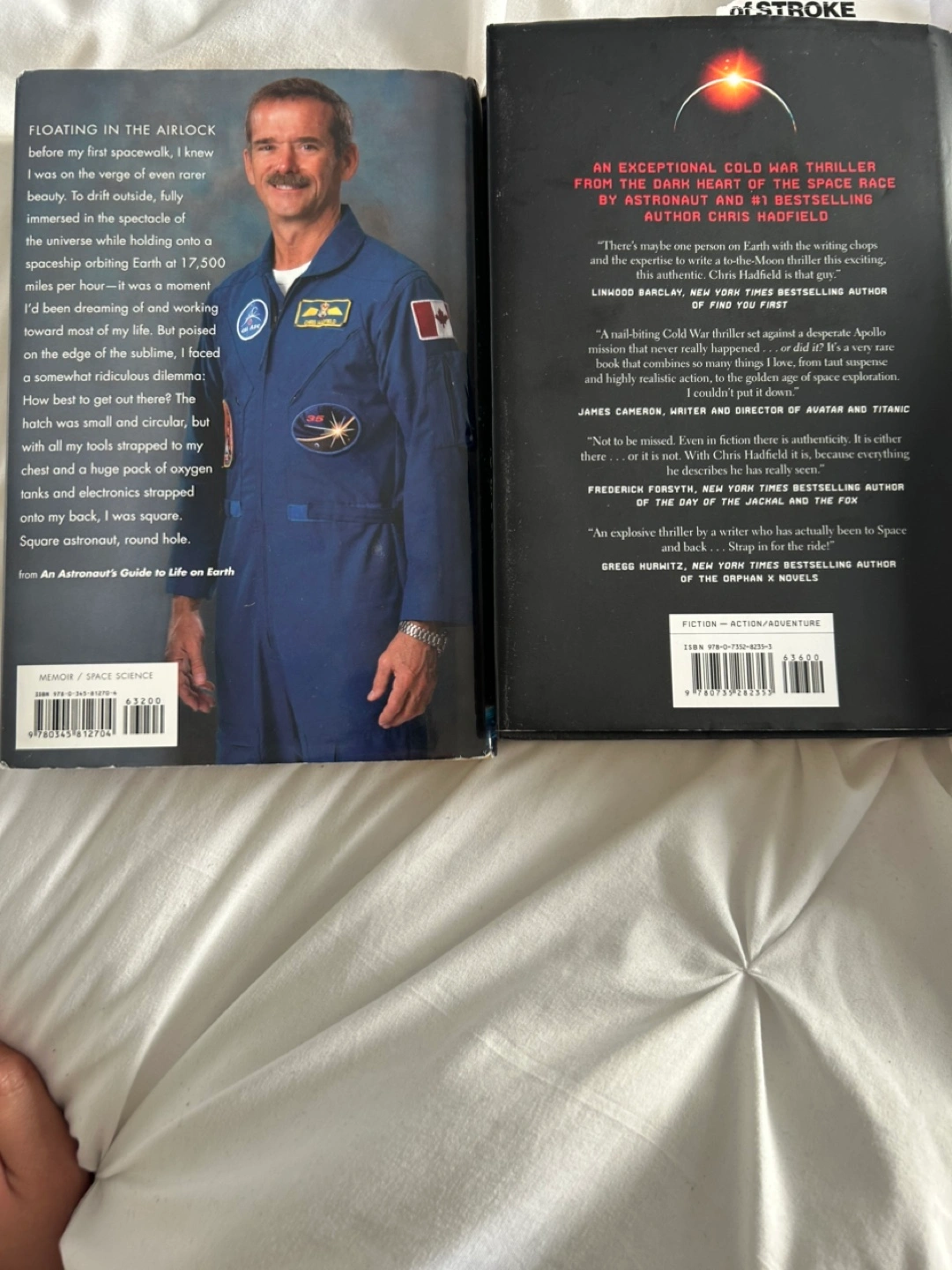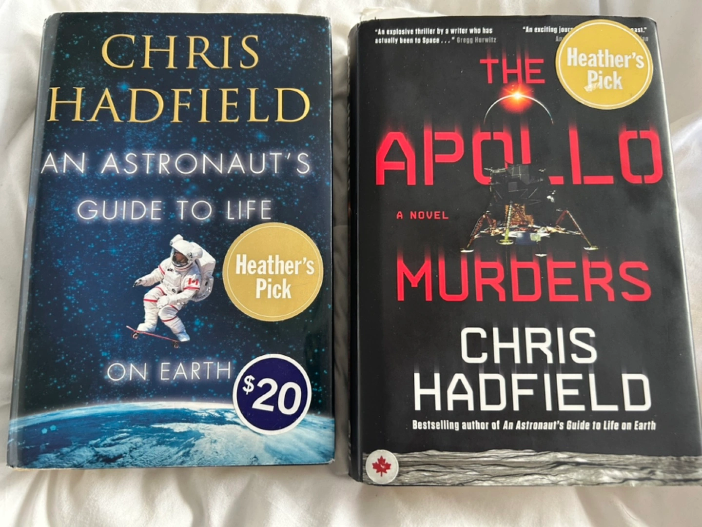 Selling 2 great condition hardcover books by Canadian astronaut Chris Hadfield! One is a nonfiction, somewhat autobiographical book: An Astronaut’s Guide to Life on Earth. Another is a Cold War thriller: The Apollo Murders. Read the books and am looking to clear some space at home! Looking to sell both books $5 each (potentially open to offers). Thanks!