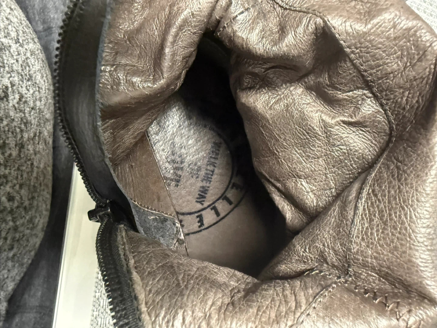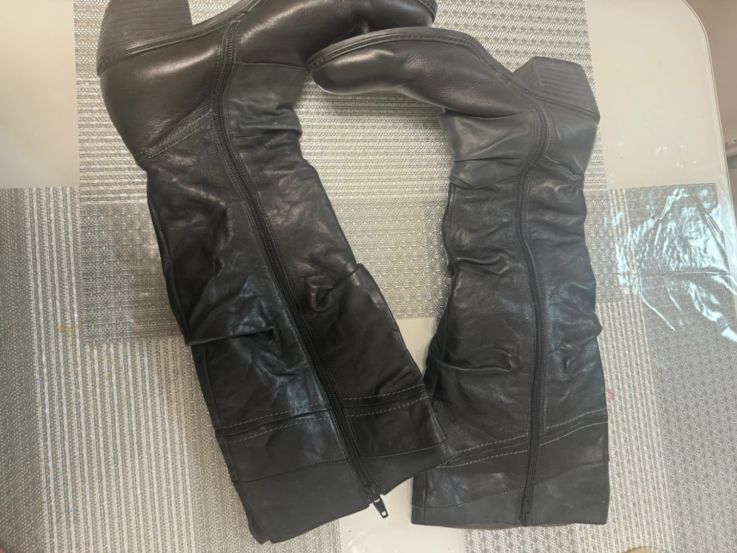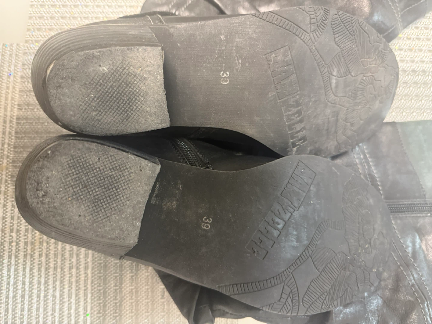 Elle knee-high black leather boots in size 9 (marked as 39 on the sole). These boots have a stylish, slightly worn look and are ready for a new adventure!