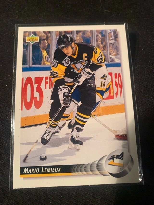 This lot features 10 Mario Lemieux hockey cards from various Upper Deck series, perfect for any Pittsburgh Penguins fan or card collector! These used cards capture 'Super Mario' in action and highlight his impressive career. A must-have for any serious collector!