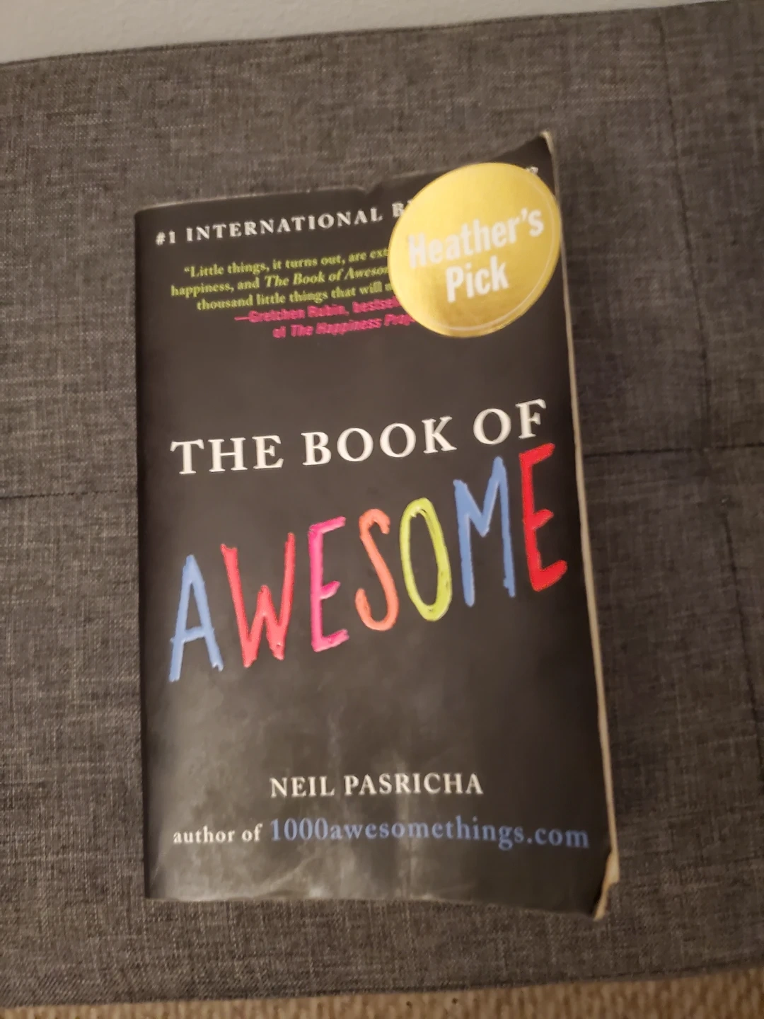 This is The Book of Awesome by Neil Pasricha. It features 'little things' that contribute to happiness. The author is also known for 1000awesomethings.com.
