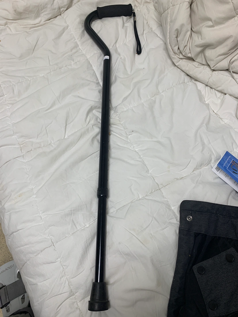 Kane is in great condition. Rubber foot pad is like new or nine out of tank condition as you can see by photos no bends and is fully adjustable to height text at 647-858-6019 or call