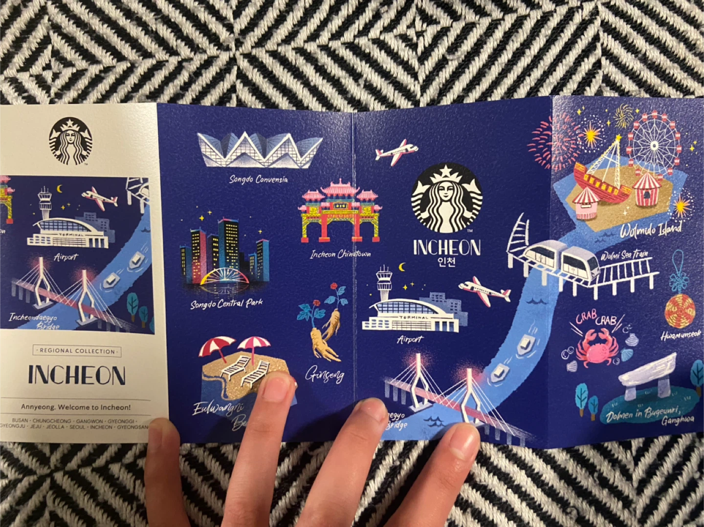 This is a Starbucks mug from the Incheon regional collection. It features various landmarks from Incheon, South Korea. It's a great souvenir for travellers or coffee lovers! Comes with the box aswell