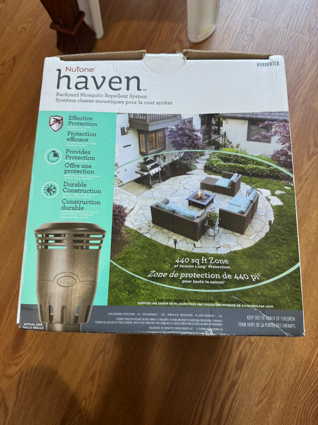 This NuTone Haven Backyard Mosquito Repellent System offers effective and durable protection for your outdoor space. It covers a 440 sq ft zone and includes 4 fixtures, 4 repellent cartridges, 65 feet of wire, and 1 controller. Installation is straightforward for seasonal long protection.